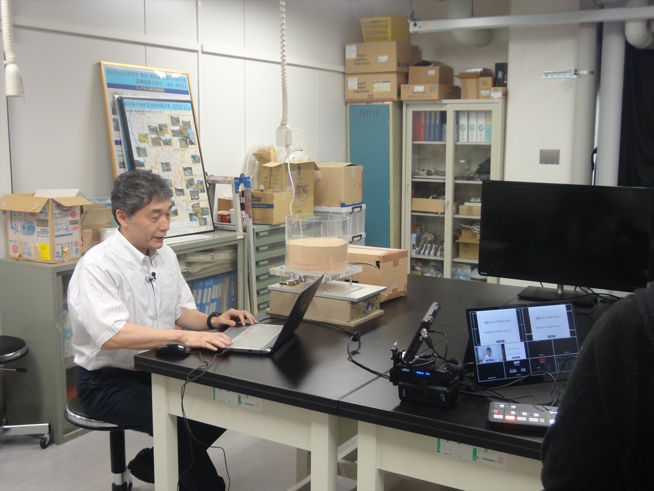 7月9日にオープンキャンパス用である研究室紹介動画の撮影を行いました.撮影は外部の方々が入って行われ,豊田先生による液状化とシールド工法の紹介と学生による三軸試験の紹介を撮りました.慣れない撮影に緊張していた様子でしたが,無事に撮影し終えることができました.個人的な意見ですが,超傑作の動画ができたと思います(^^).この動画で多くの人が長岡技術科学大学,あわよくば地盤研に興味を持ち入学してもらえたら嬉しいです!是非見てみてください!