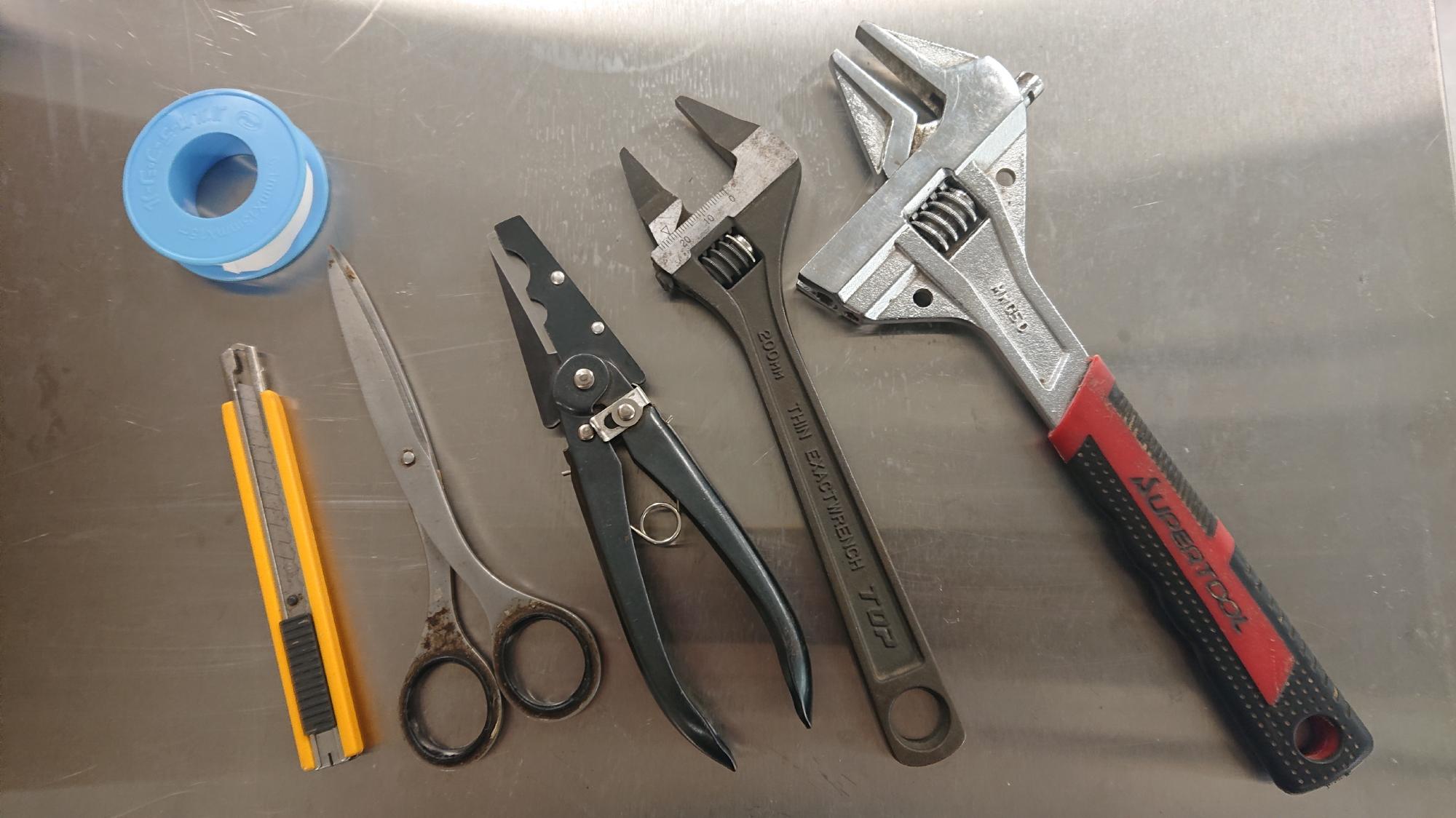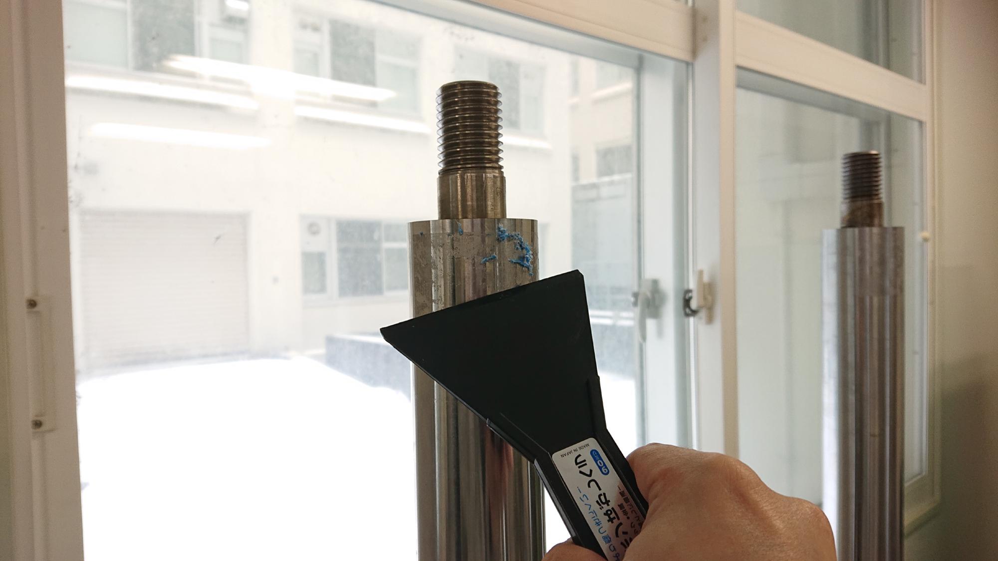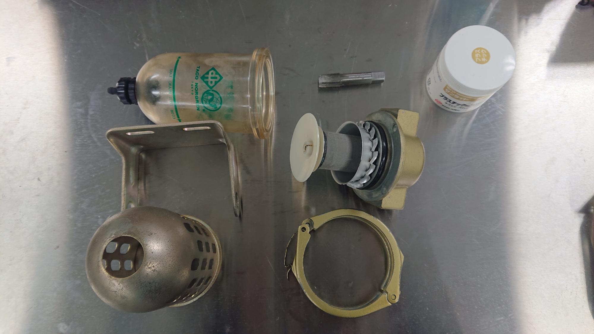 - フィルターの継手部はハンドタップを用いて,余計なゴミや前回使用時に残ったシールテープ等を掃除しました.水を一時的に溜めるためのボウルはプラスチック用のコンパウンドで汚れをこすり落としました.