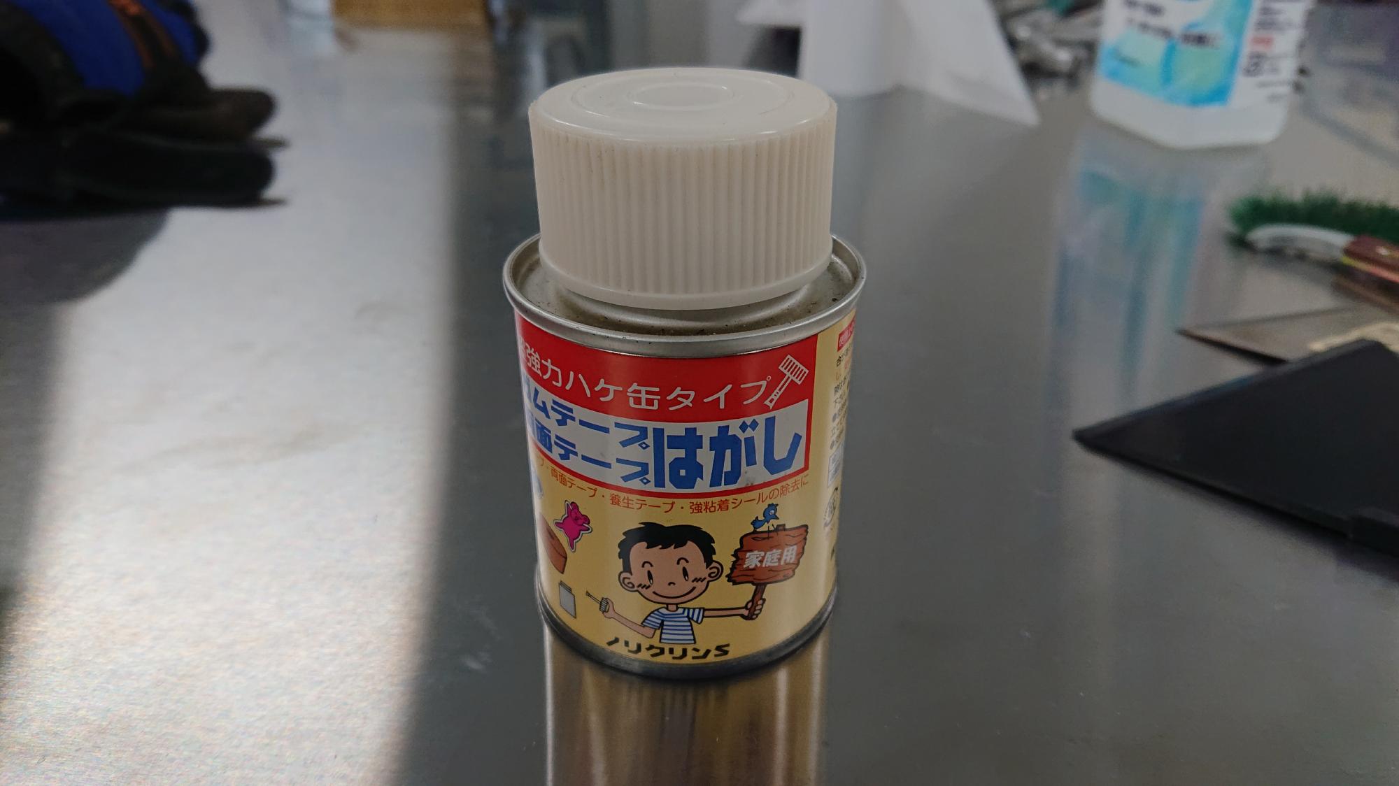 - 装置についた汚れを落とす,と言っても,劣化したガムテープの貼り跡は,最大の敵です.この場合は「ガムテープはがし液」(図5)が効果的.油臭い臭いがありますが,キレイにベタベタしたノリを除去できます.これがあるからケーブルを束ねる時はテープ類はなるべく使用しないほうが良いです.