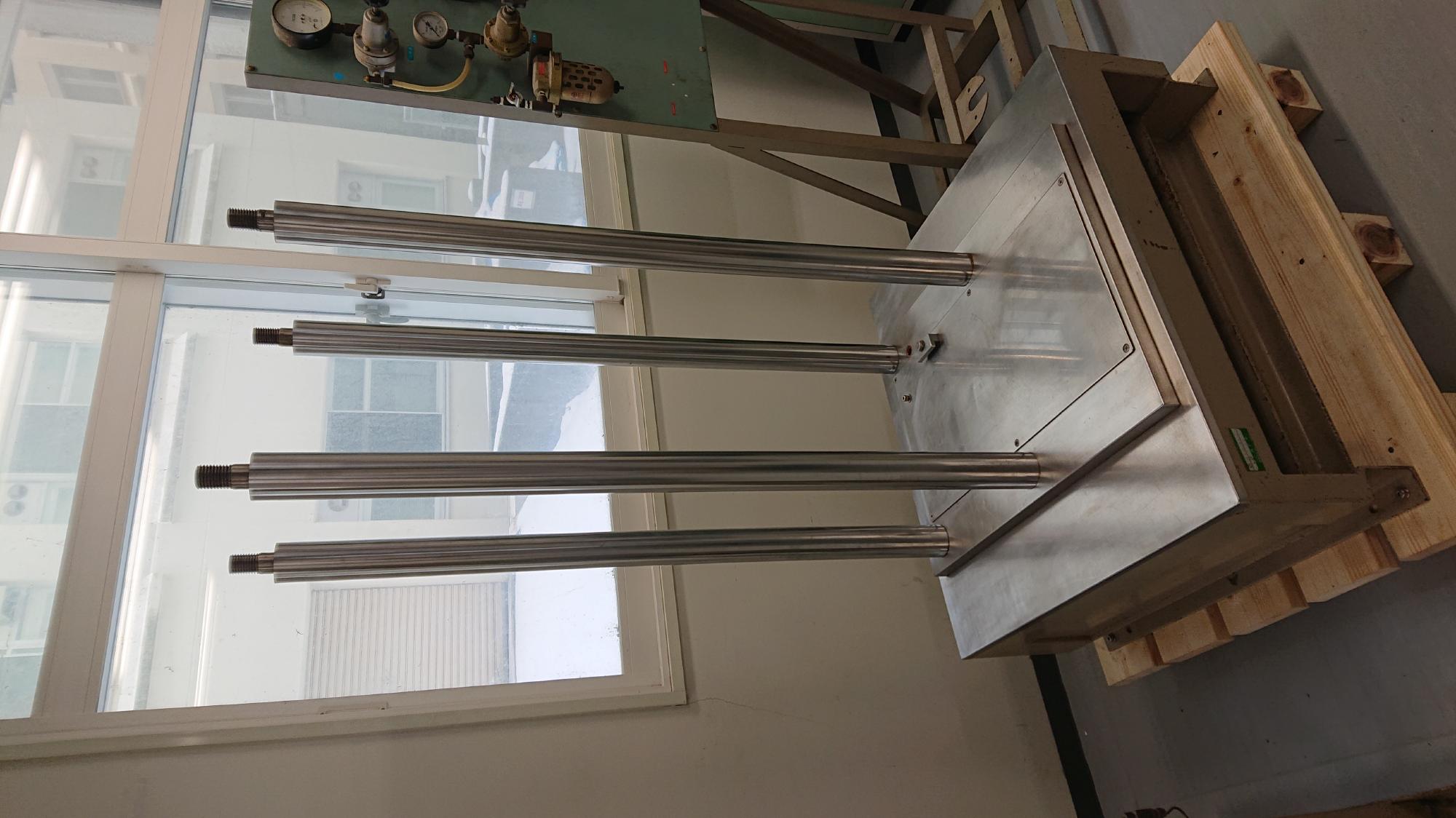 - 新調した支柱は,割高ですが,錆びのことを考えてSUS304製にしました.特に,長岡は湿度が高いので,ほっとくと直ぐに錆が浮いてきます.それと,変位計ターゲットの上下動作が渋いと,細やかな設置作業ができない(ストレスになる)ので,硬質クロムメッキを施してあります.なお,硬度の指定は不要ですので,焼きは入れてません.