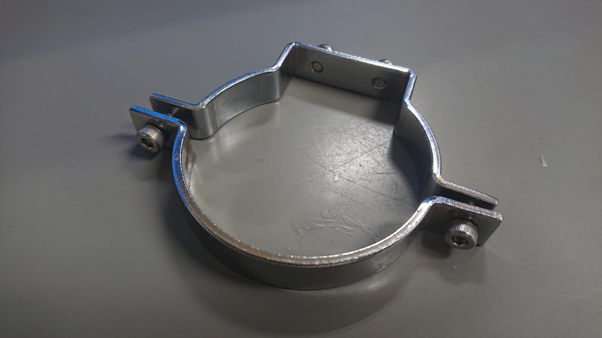 - 以前付いていたゲージは,古くてとても大きなものでしたので,購入したマスターゲージを取付けることができませんでした.そこで,図58のようなゲージアダプターを自作して,これを介して取付けることとしました.ゲージアダプターは2.5mm厚のステンレス板を加工したものです.時間を優先して,しばらくは未塗装状態で使用します.