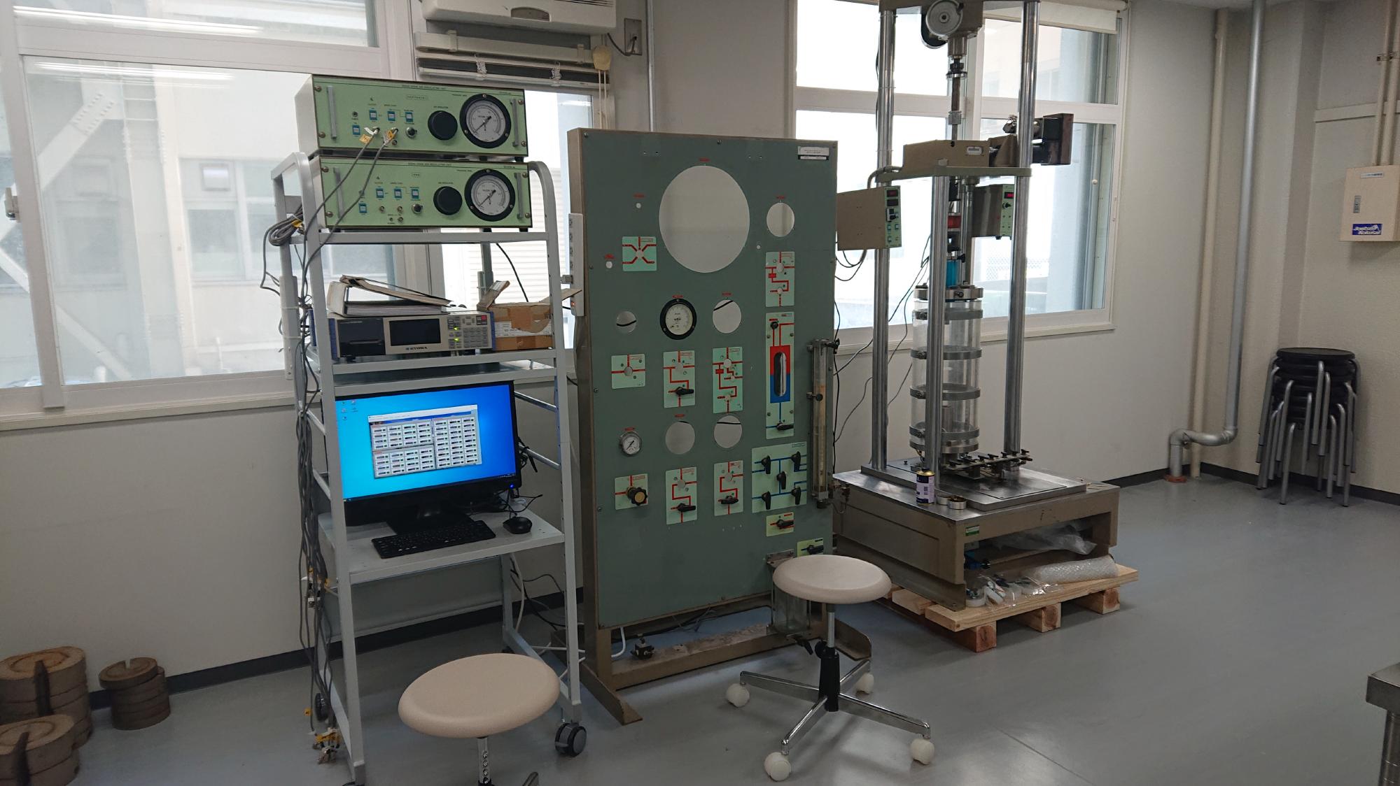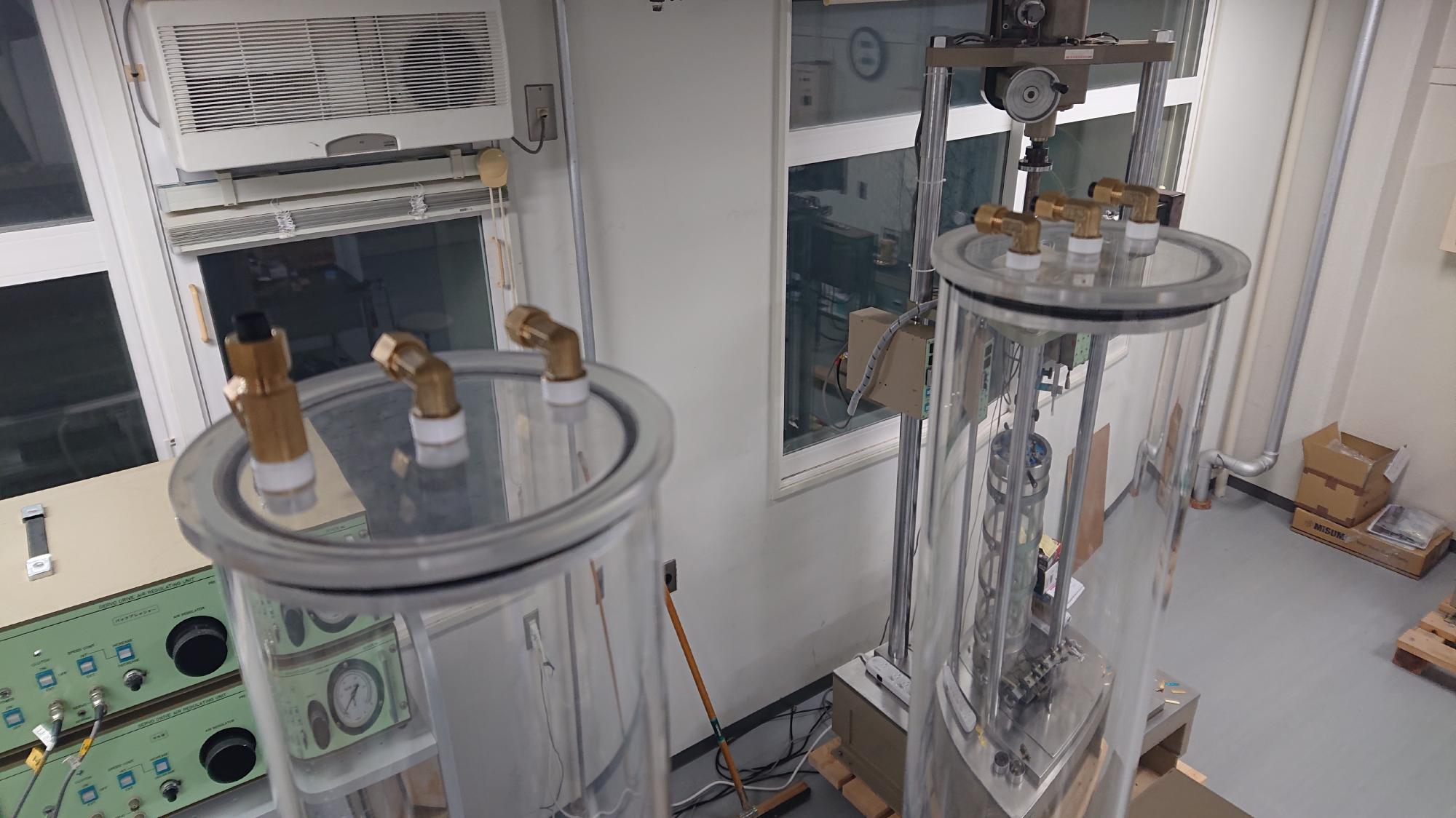 - 2024年度の整備の流れと方針ですが,制御盤は,すでに稼働している2台に備わっている機能をそのままコピーしたいと考えております.問題は真空槽,脱気水槽,給水槽が無いので,一から作らなければならないことです.2024年度は,志賀先生の予算と相談しながら制御盤完成を最優先として整備したいと思います.その後は,圧力室の整備となりますが,内圧,外圧の制御と供試体内側,外側の体積変化測定をどうしたいかで予算と工程が大きく変わってくるので,必要最小限から対応したいと思います.制御系統については,制御盤同様にコピーアンドペーストで済ますつもりですので,余力があればやりたいと思ってます.本プロジェクト最大のハードルは回転角計を一から作らないといけないことです.まずは情報収集というところでしょうか.