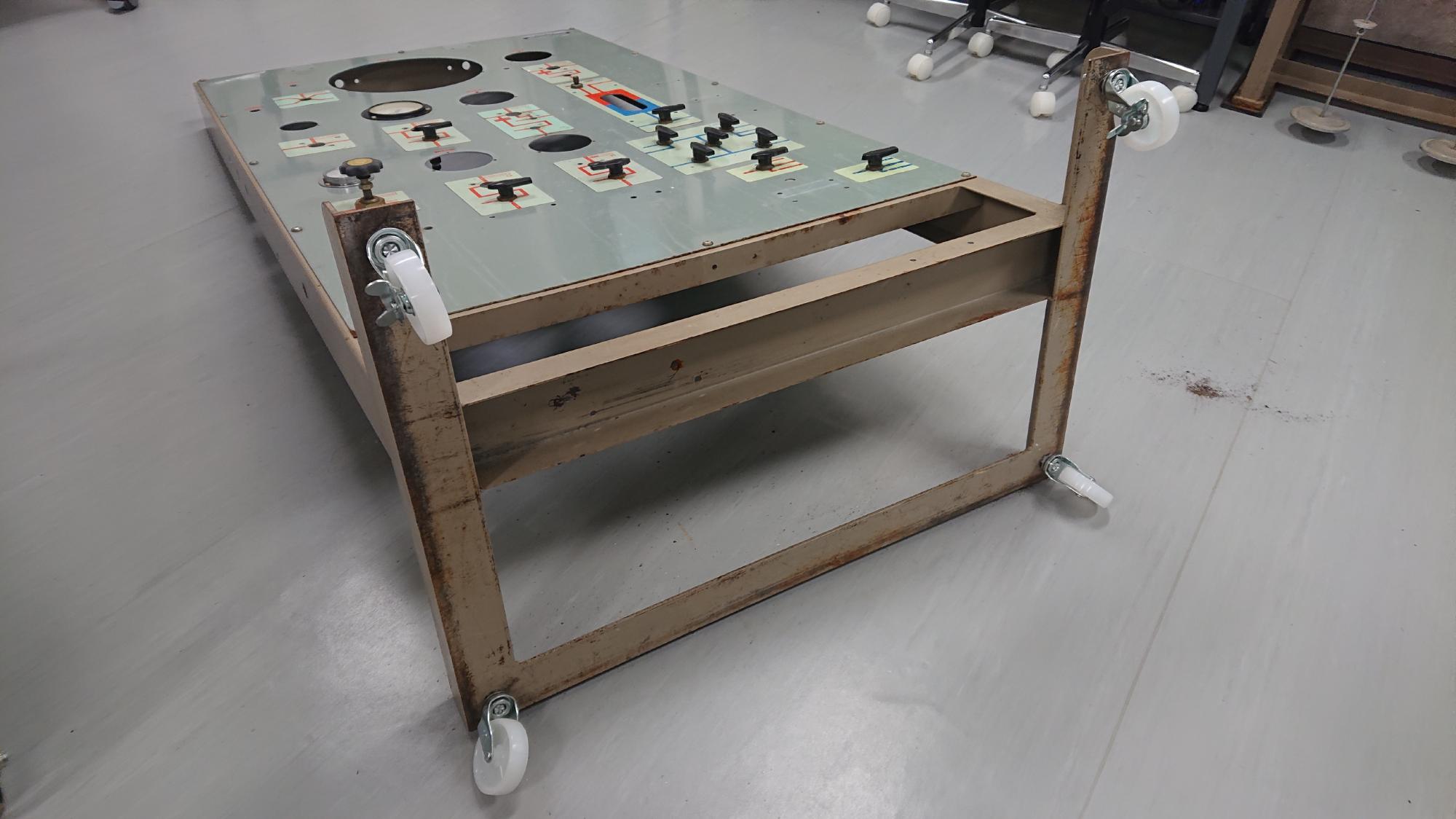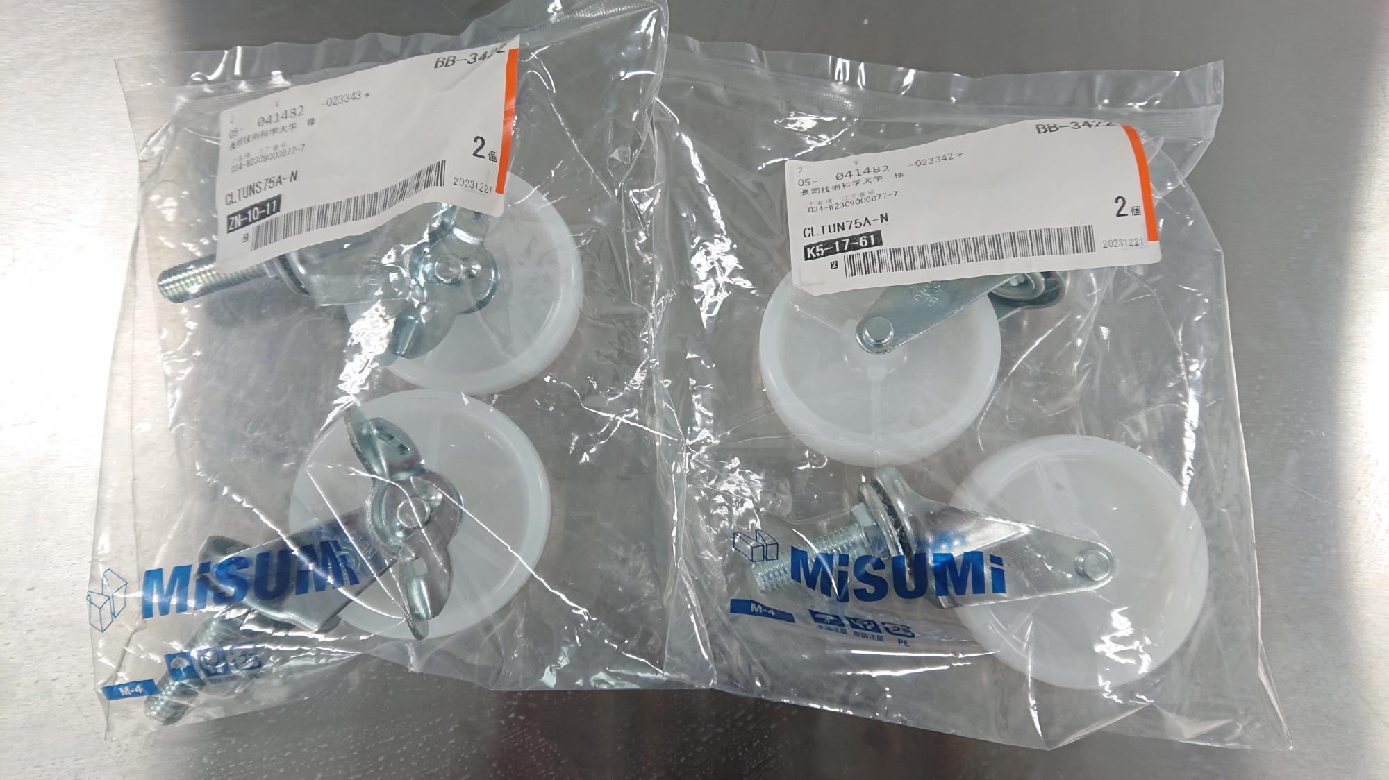 - 2024年7月3日,制御盤にキャスターが無かったので,部品を調達して設置しました.キャスターは,経年で床を傷つけることを嫌がって,ゴム製では無くて,ナイロン樹脂製のものを選択しました.