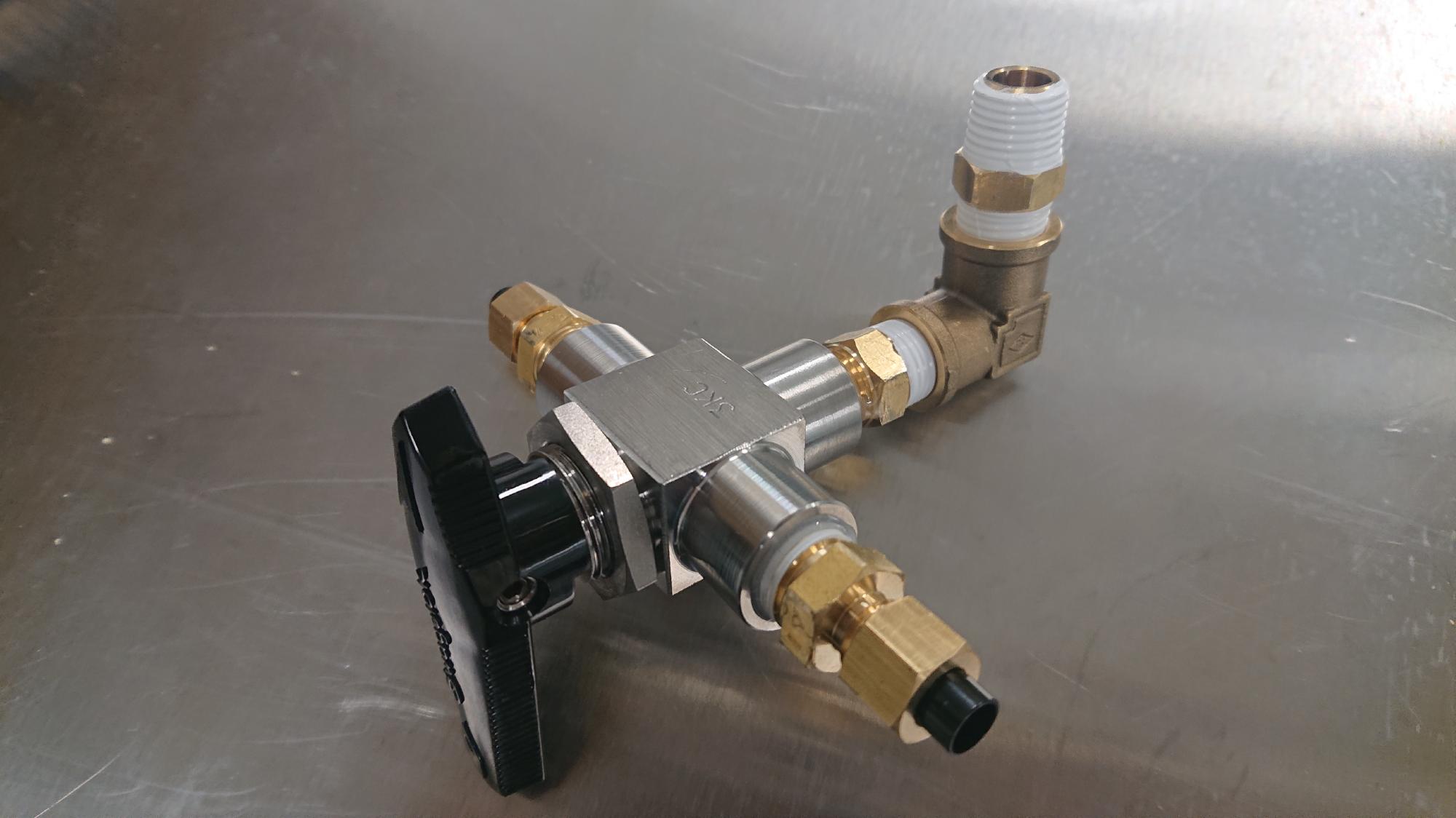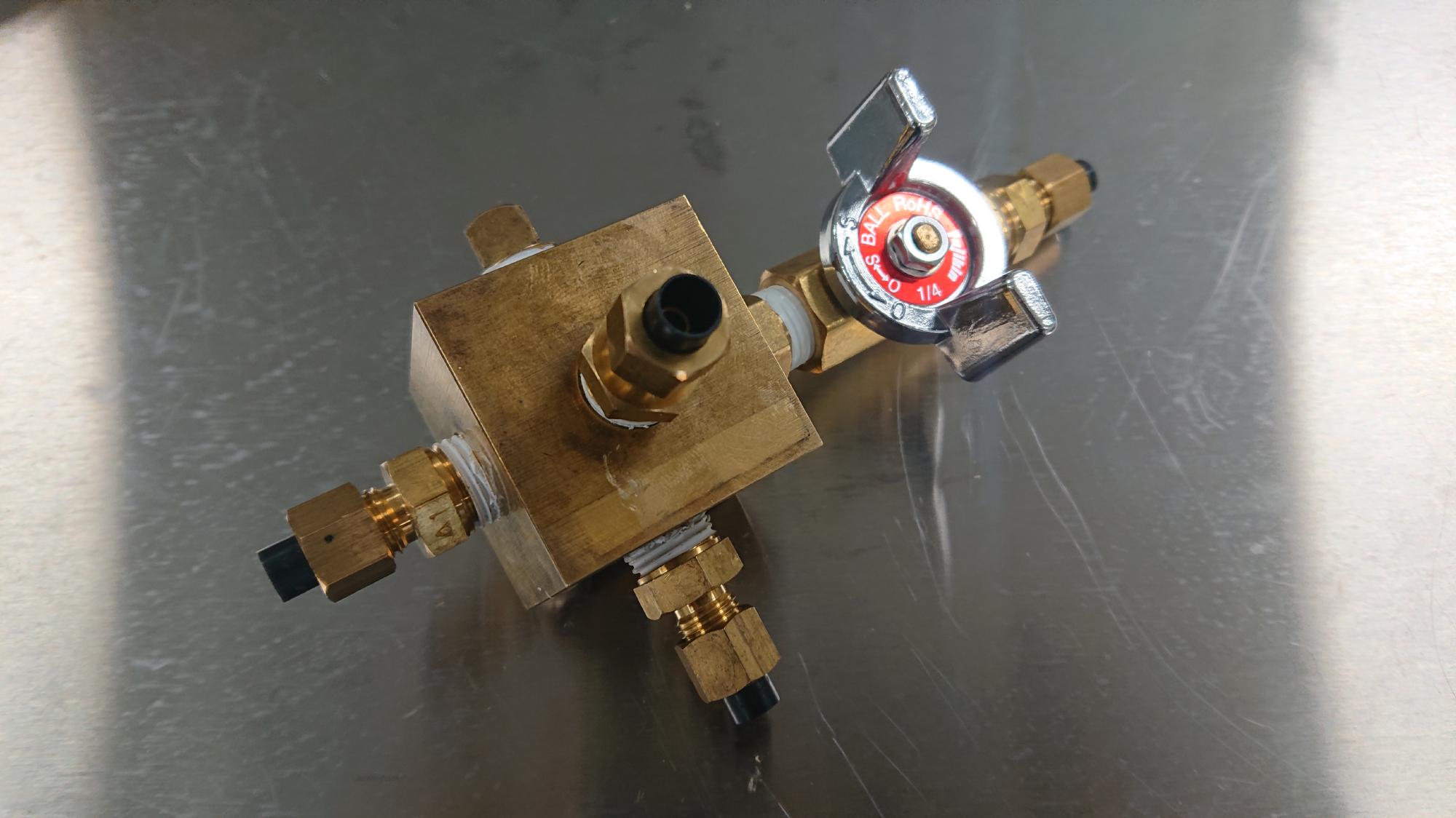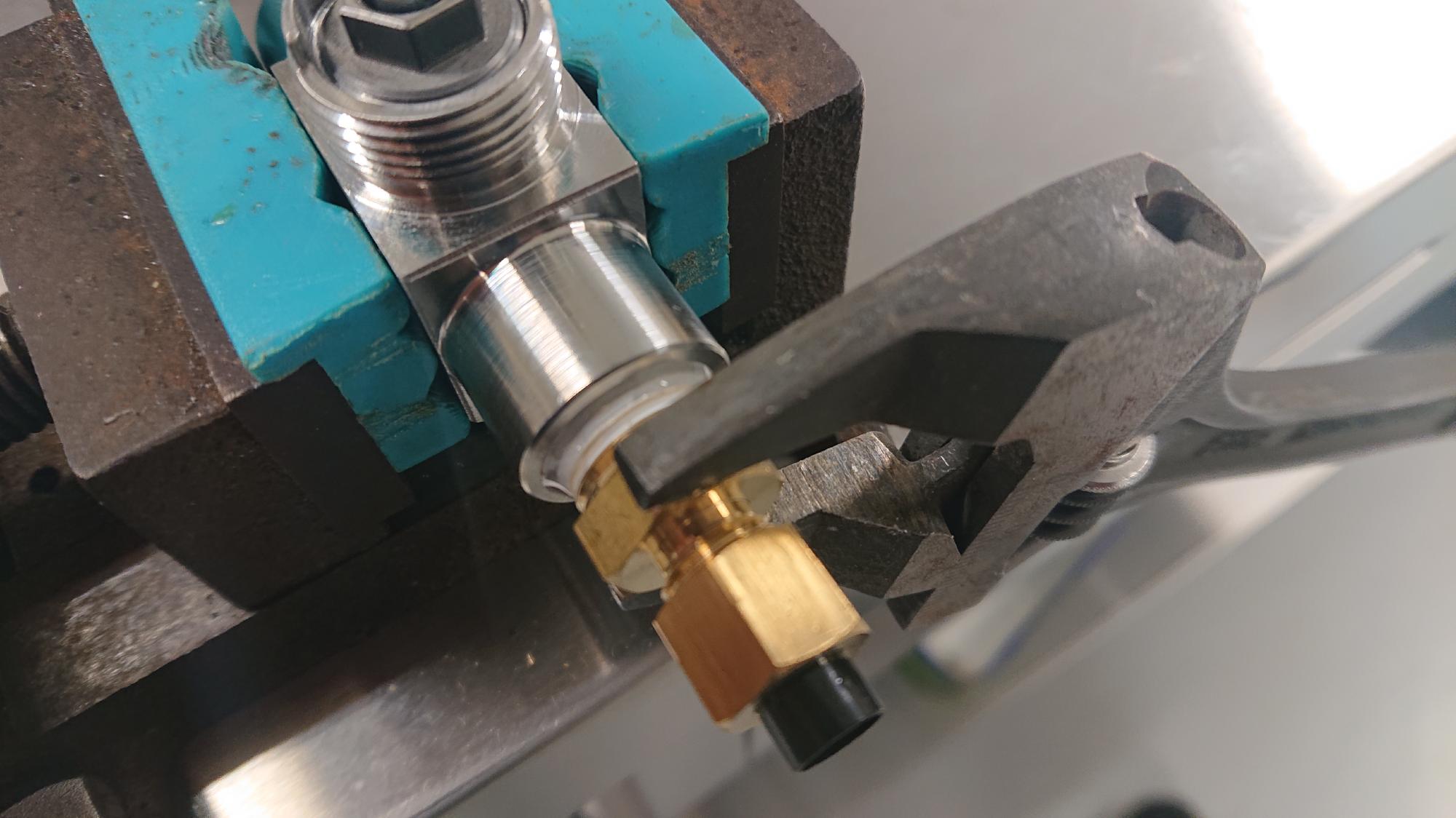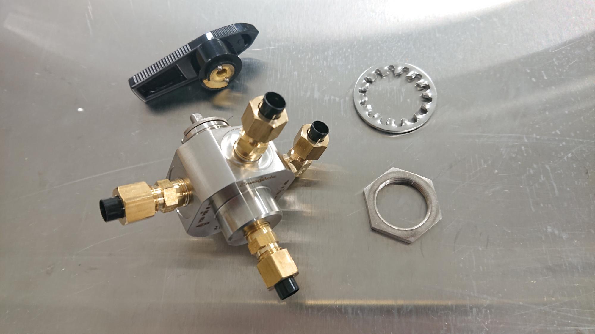 - 内部ポートは閉塞がある場合はツイストドリルで貫通し直しますが,今回はこれが無かったので省略します.新しいチューブソケット,ニードルバルブを取り付けて完成です.