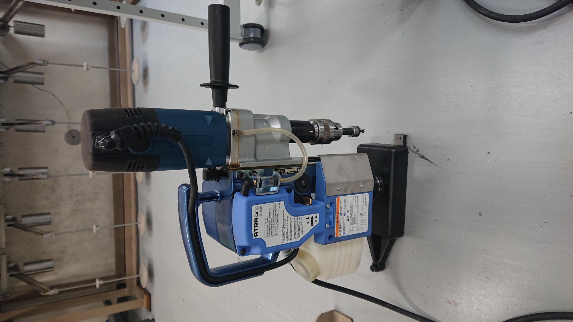 - 2024年7月4日,制御盤側面にある空圧供給および切替のためのワンタッチポート設置作業を行いました.このポートは,パネルユニオンを介して,日東工器㈱製のワンタッチカプラーとチューブソケットが接続される構造になります.まずは,パネルユニオン用の20mm穴を制御盤側面に開けていきます.比較的精度が求められる加工ですので,今回は,アトラエースを用いました.