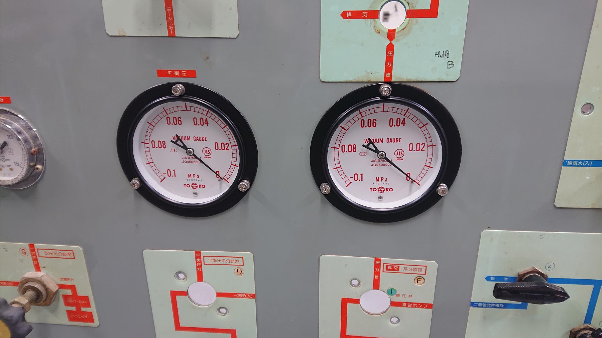 - 2024年9月19日,マスターゲージ,真空圧ゲージ,セル圧供給用正圧ゲージを制御盤に取り付けました.