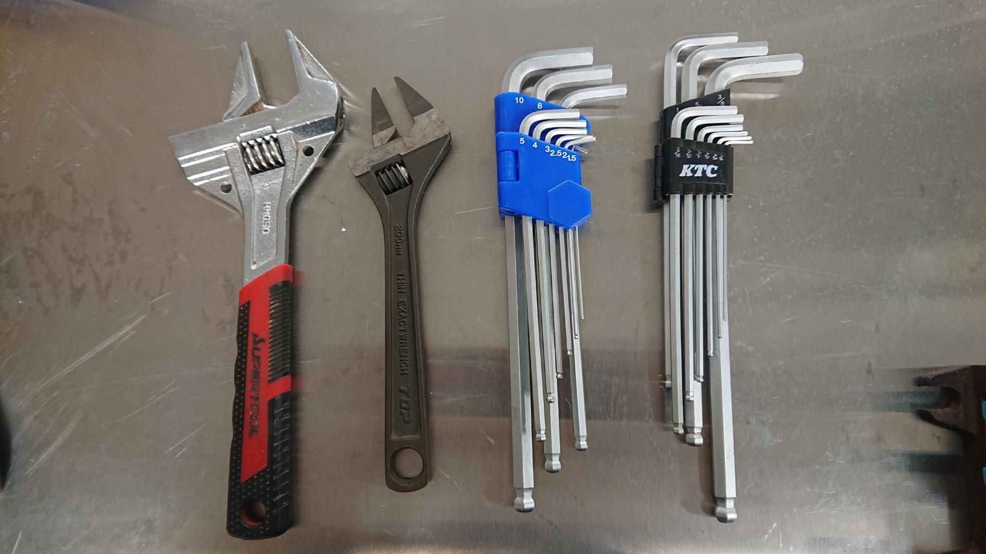 - 樹脂製のハンドルはインチサイズの留めネジで留まっているので,登場シーンは少ないですが,インチサイズ六角レンチ(図69中最右)が必要になります.
