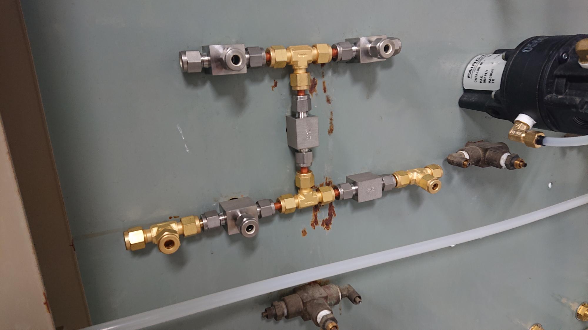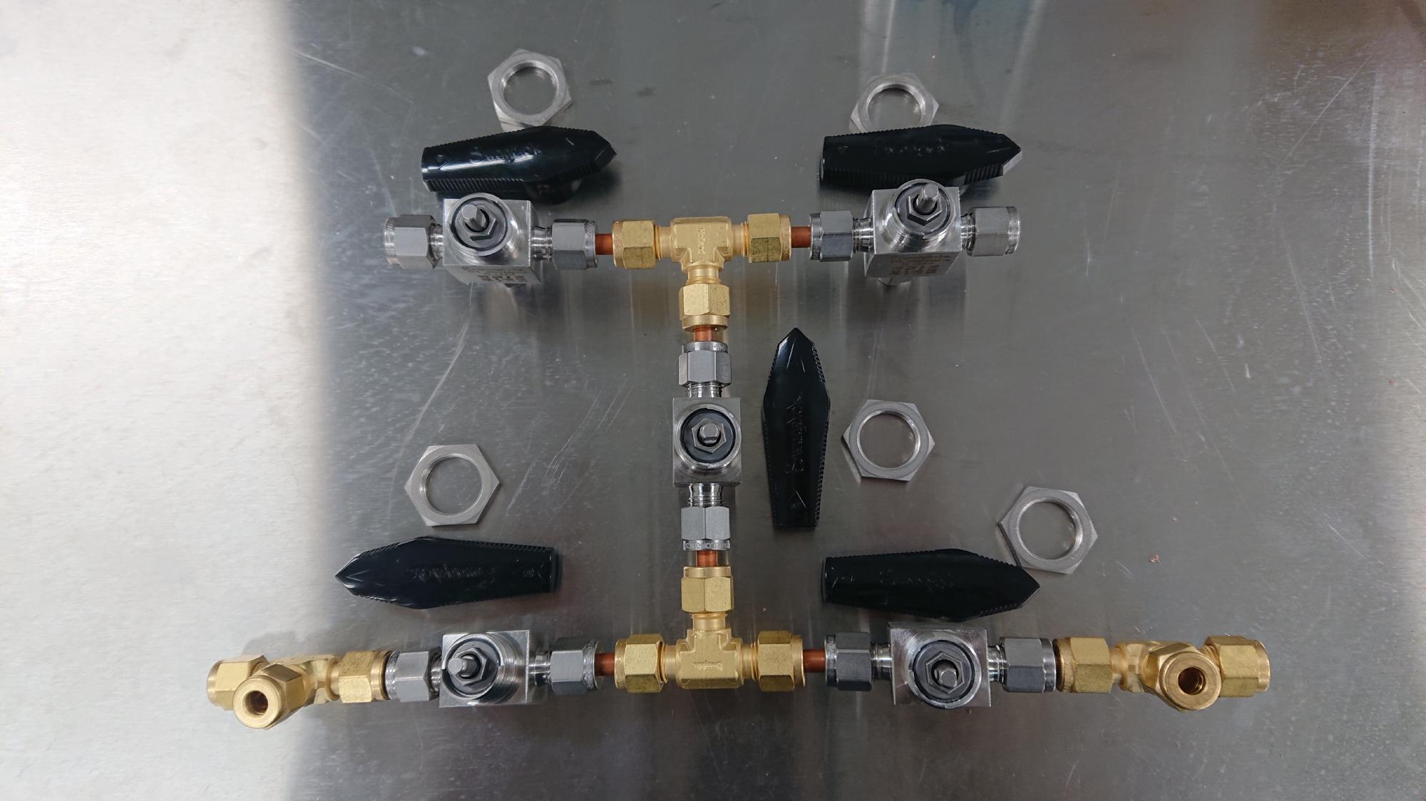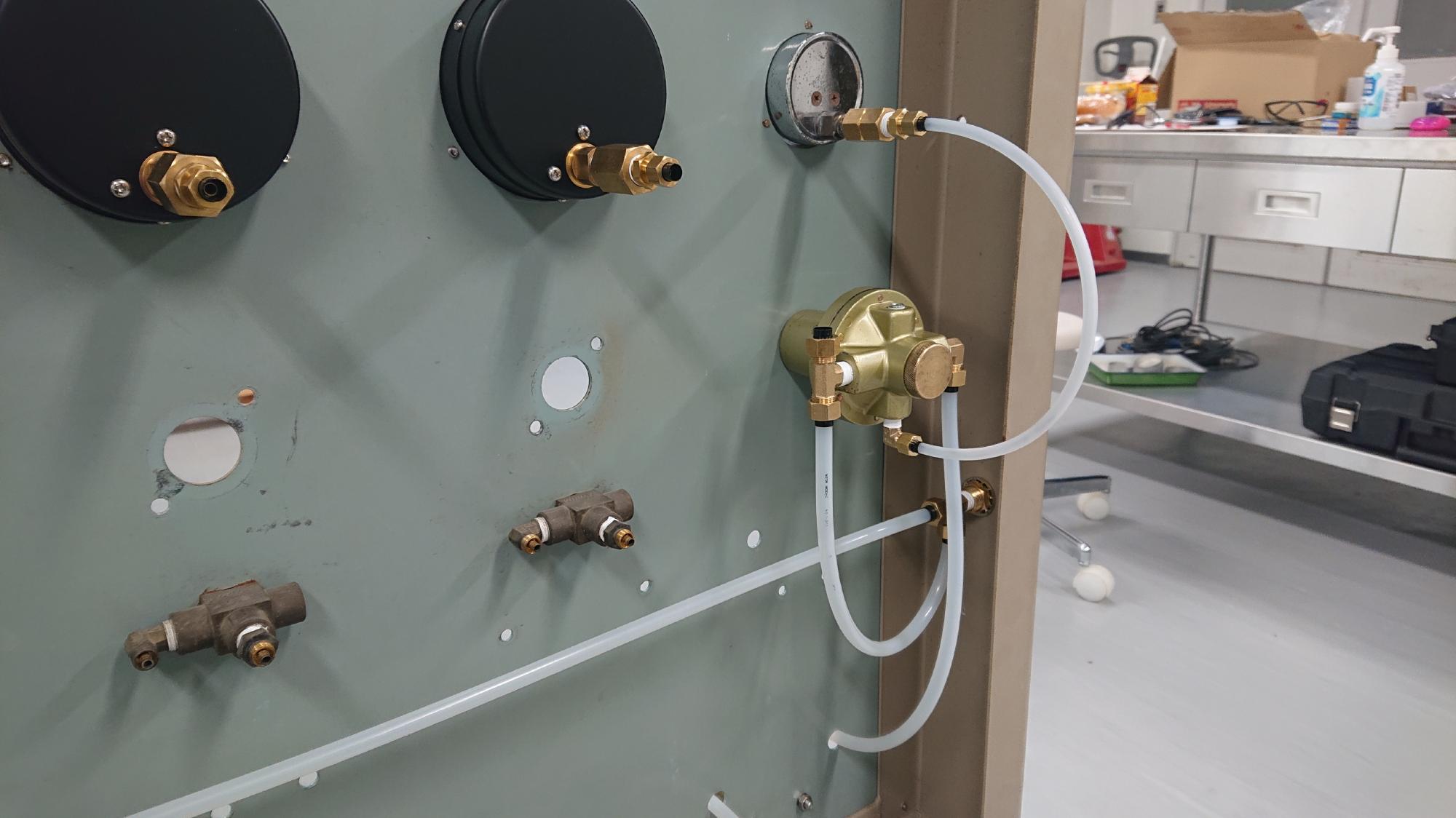 - 2024年11月8日,一次圧用,セル水給水用,真空圧載荷用の各種レギュレーターの取付作業を行いました.セル水用は「レギュレーターオーバーホール編」でオーバーホールしたものになります.