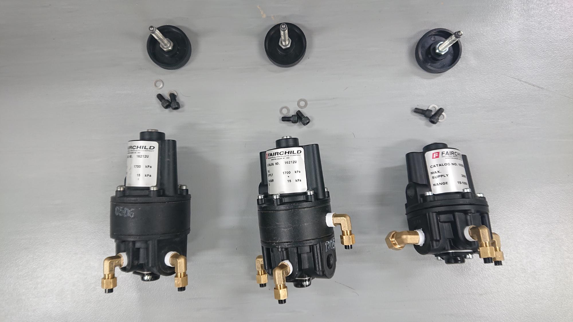 - 真空圧用のレギュレーターは「Fairchild製モデル16」を採用しています.他社製のものを一度試したことがありますが,リリースが早すぎる感じがありましたので,慎重に作業する必要がある二重負圧時工程に向かないと考えております.