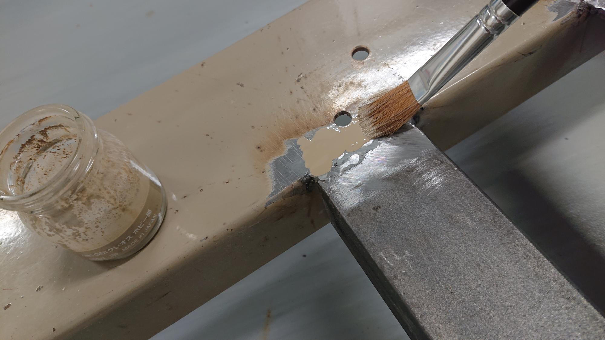 - 今回は時間短縮を目的に,塗装はスプレーガンではなくて筆塗りを採用しました.塗料に薄め液を少し加えることで,筆ムラを抑えることができます.