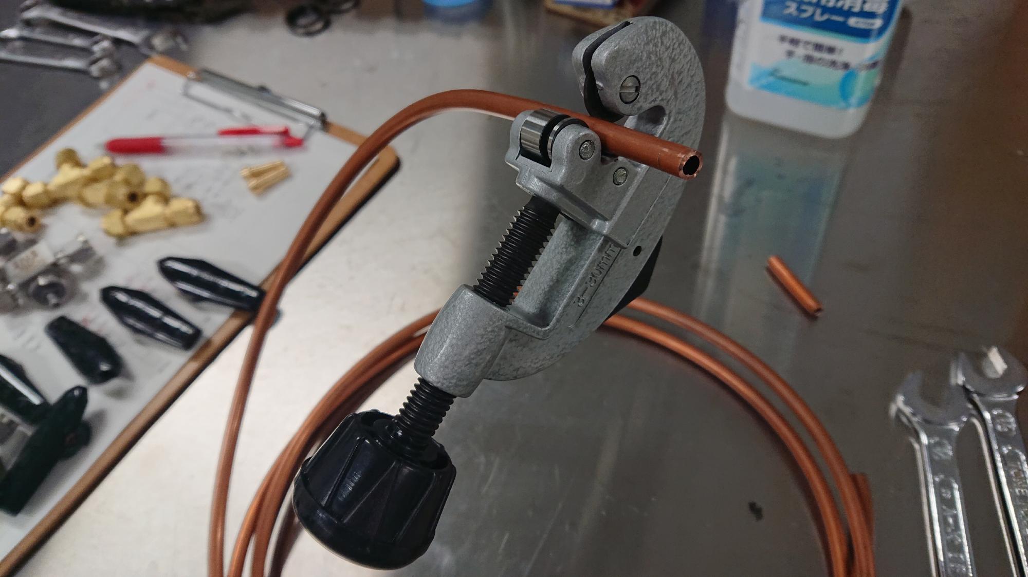 - チューブの切断面は,ななめになると,ナット締め付け時のスリーブの効きが悪くなるので,専用のカッターを使用して,長さ方向に対して垂直に切断することが望ましいです.