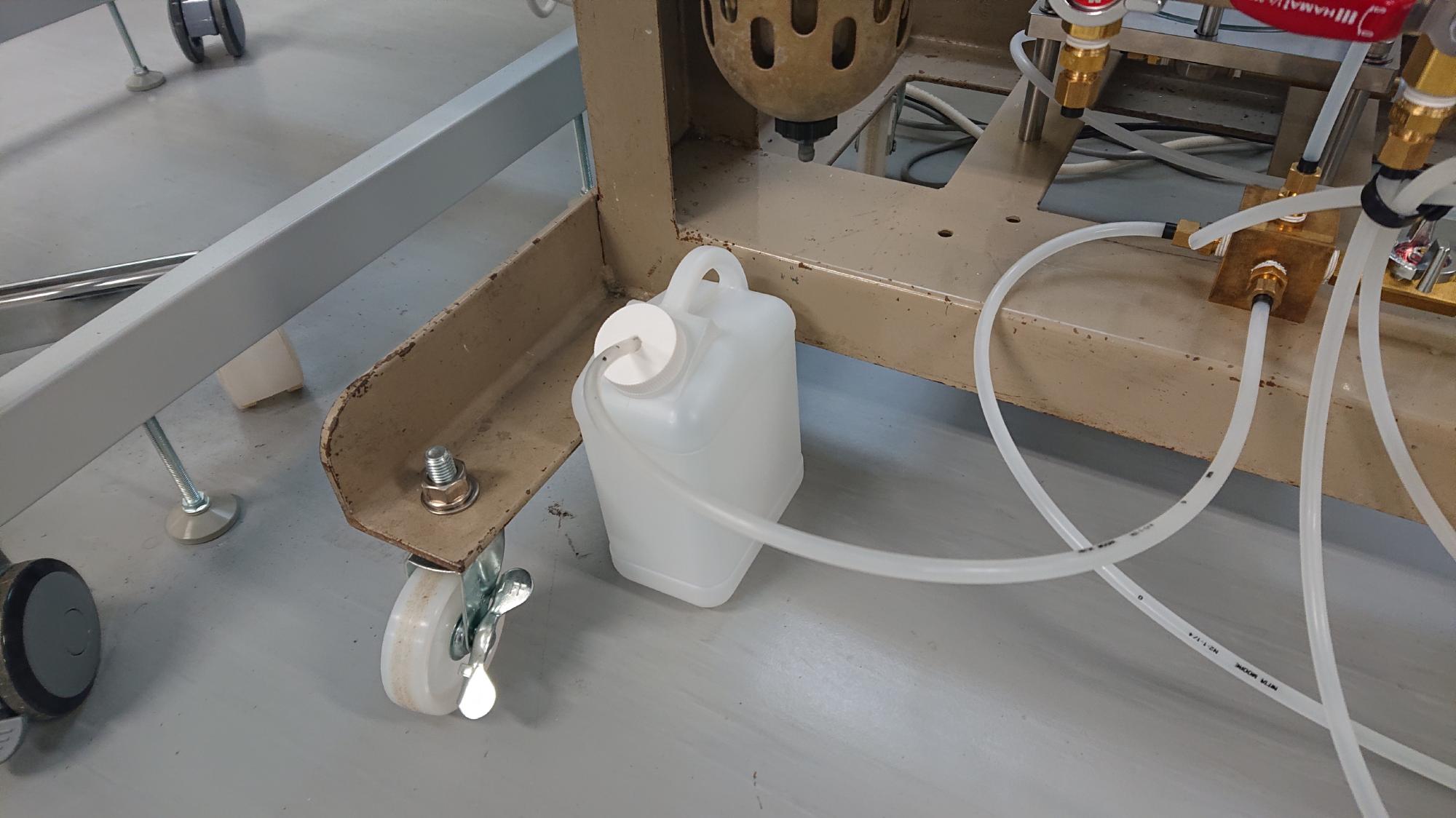 - 排水タンクは,学生が良く蹴とばすので,1リットル程度の小振りなものを使用してます.