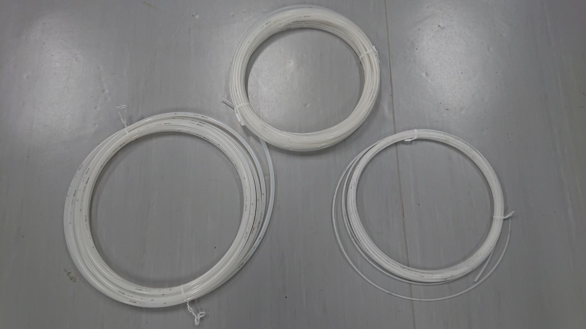 - 制御盤への配管は,硬質のナイロンチューブを継手径に合わせて三種類使用しました.配管は圧力載荷時に膨張があるので,基本は短く最短ルートで巡らす必要があります.