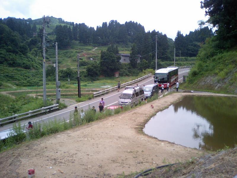 7月30日に東京大学と埼玉大学と合同で中越・中越沖地震現場見学会を行いました.午前9時から午後4時までのスケジュールで,長岡市,旧山古志村を中心に見学を行いました.昼食は持参したお弁当を旧山古志村役場内山古志会館でとり,合わせて地震の記録ムービーを見せて頂きました.本研究室からは,豊田准教授とDr.高田とオープンハウスで研修中の函館高専生が参加し,長岡国道・湯沢砂防さんのお力をお借りしてエスコートしました.