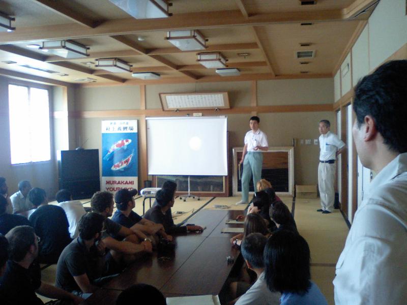 - 本見学会の最後に,長岡国道さんと函館高専の学生を連れてDr.高田の新潟の実家(山古志虫亀)に立ち寄り,山古志と言えばコレと言わんばかりの泳ぐ宝石,養殖の錦鯉を見せて頂きました.
