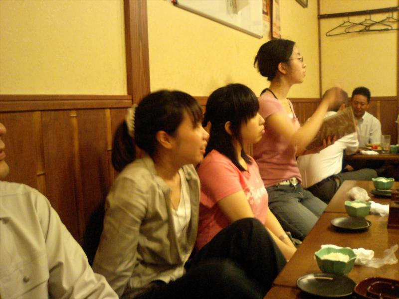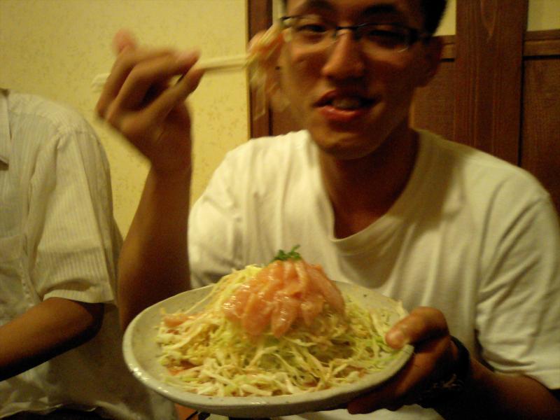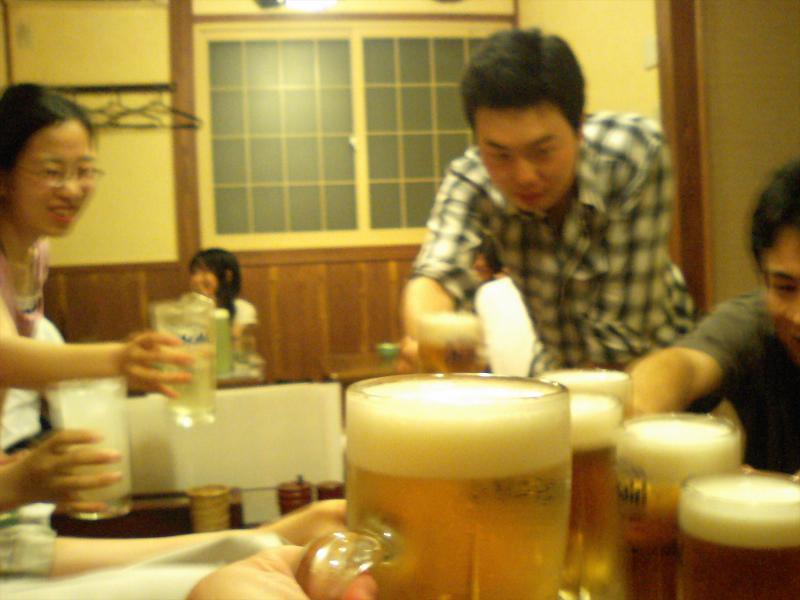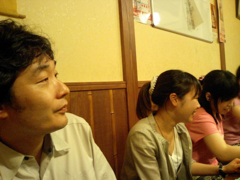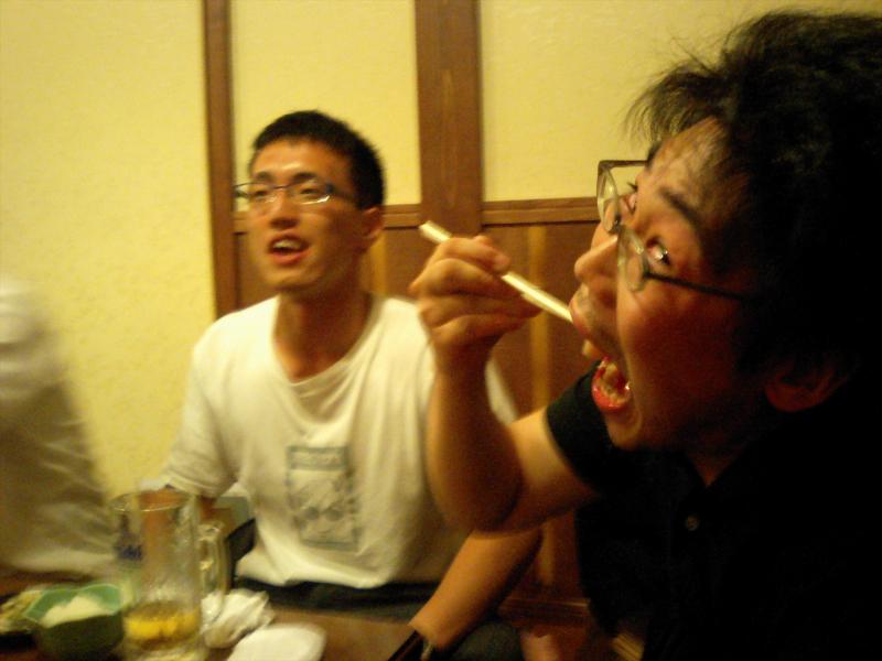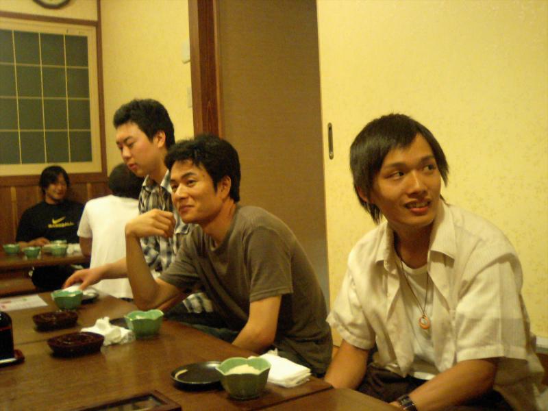 7月4日に来年度修士1年から編入する予定(合格した場合ですが)の高松高専松本君が研究室を訪問されました.当日は,面接試験を行い緊張の連続だったそうですが,打ち上げ+合格祈願の懇親会の場では,在校生を彷彿させる飲みっぷりで,一転実力を発揮しておりました.是非,合格して来年4月から長岡に正式に来ていただき実験マシ~ンとして活躍し研究室を盛り上げてほしいです.決して現M1・2に期待していない訳ではありません.悪しからず.しかし,高松高専の2年先輩の「世界の阪東」さんは飲み過ぎでグッタリ,「コレステロール大臣」はカロリーとコレステロールを大量に摂取し,恐らく体脂肪率35%超肥満の大台を突破する勢いで喰ってました・・・.おいおい明日からの実験大丈夫っすか?