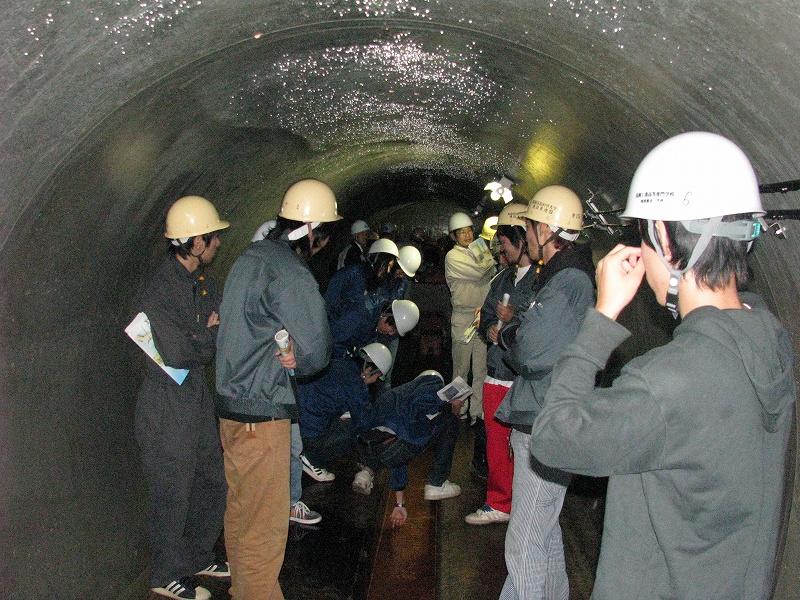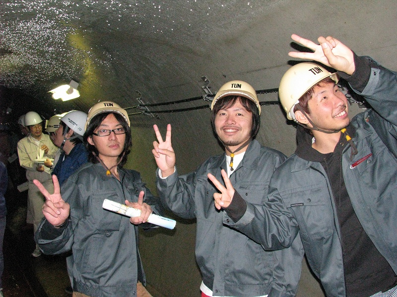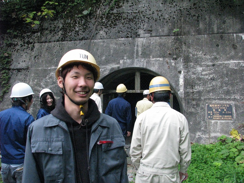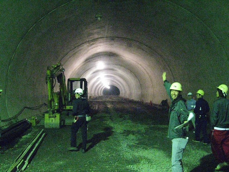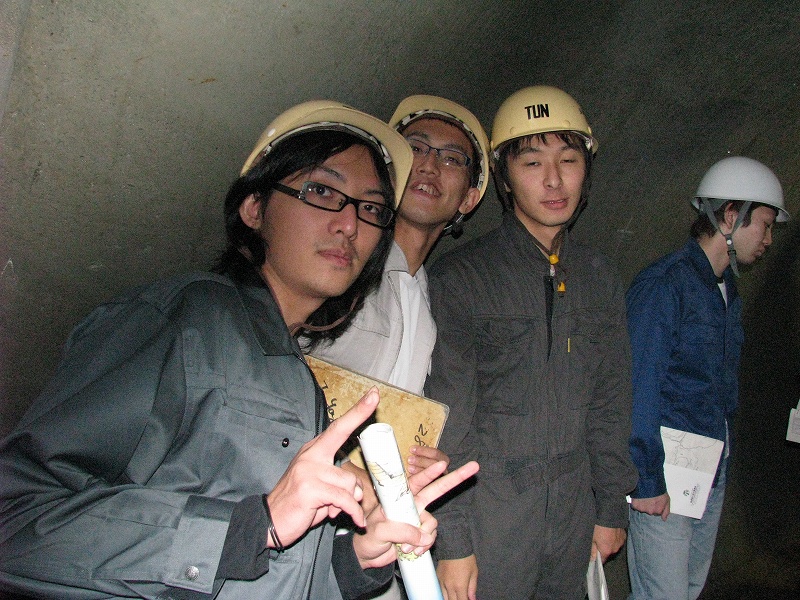 見学では地すべり後を見せていただきましたが,いかんせん規模が大きすぎて・・・どこが滑った跡やら???明確に分かるポイントは一箇所だけでした.自分達が立っている場所が地すべり跡地だったわけです.排水トンネルの中にも入ることができ大変貴重な体験をさせていただきました.