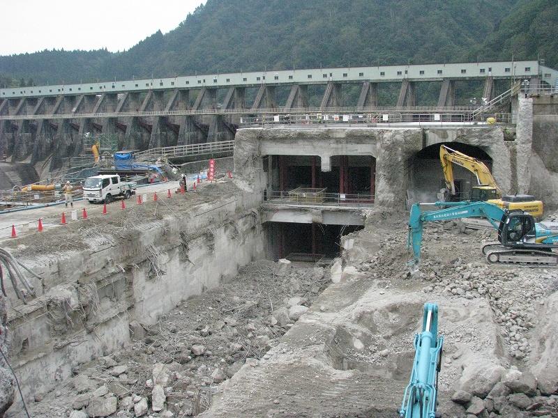 豊実発電所は昭和4年に建設され,経年による老朽化が進んでいました.水資源の有効活用を図るため,発電所の大規模な改修工事が行われることとなりました.本改修事業では水車発電機を6台から2台に見直し,高効率の立軸バルブ水車を採用することにより,使用水量を変えることなく,10%程度の出力増を図ります.