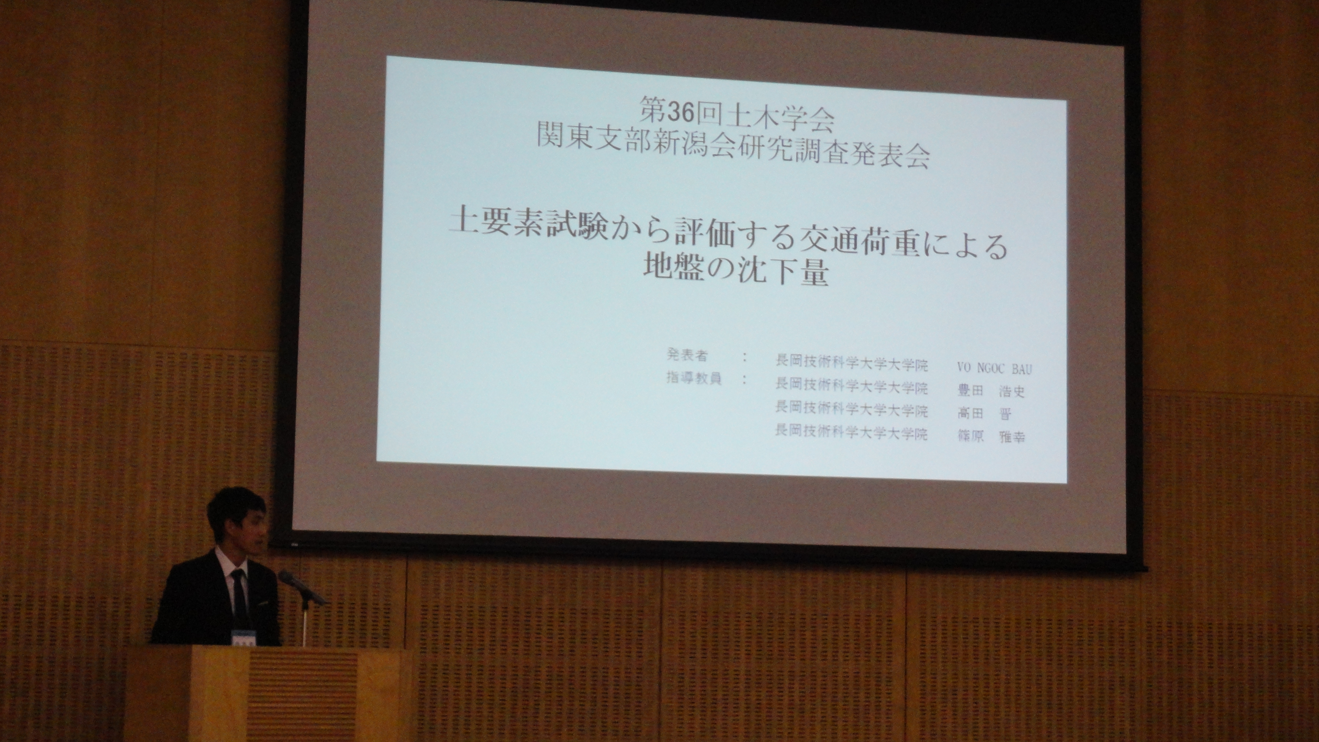 平成30年11月13日(火),新潟県新潟市中央区万代島朱鷺メッセにて第36回土木学会関東支部新潟会研究調査発表会が開催されました.毎年,地盤研修士一年生は参加しなければいけないことになっています.9分間の発表と3分の質疑応答という流れです.発表は以下の題目の通りです.