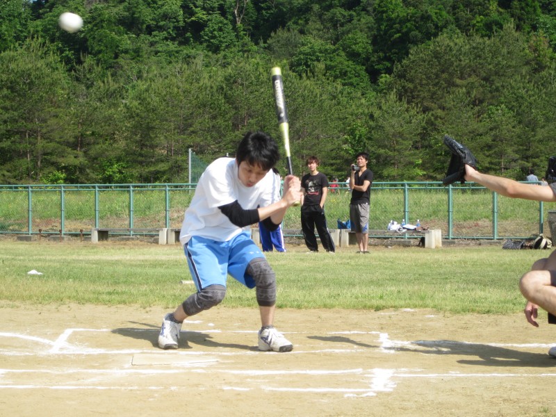 予選を2勝1敗で通過し,迎えた決勝トーナメントの初戦は防災研究室でした.1対1で迎えた最終回表,まさかの相手打線が爆発してしまい,一挙5点を失ってしまいます.最終回の地盤研の攻撃は誰一人諦めることなく戦い続けましたが勢い虚しく2点にとどまり,地盤研のV3の夢は絶たれてしまいました(泣)..