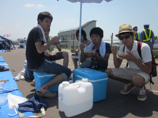 平成24年8月1~3日に,毎年恒例の長岡祭りが開催されました.なんと言っても長岡祭りの目玉は長岡大花火!.例年のごとくM1とB4は,先生方に喜んでもらいたい一心で花火開始の20時間前から場所取りを開始しました(笑).