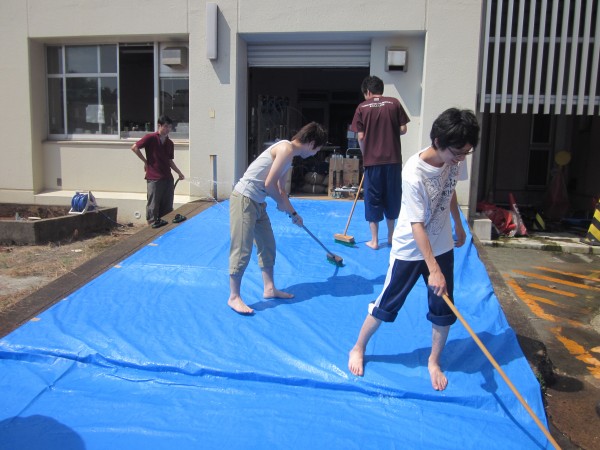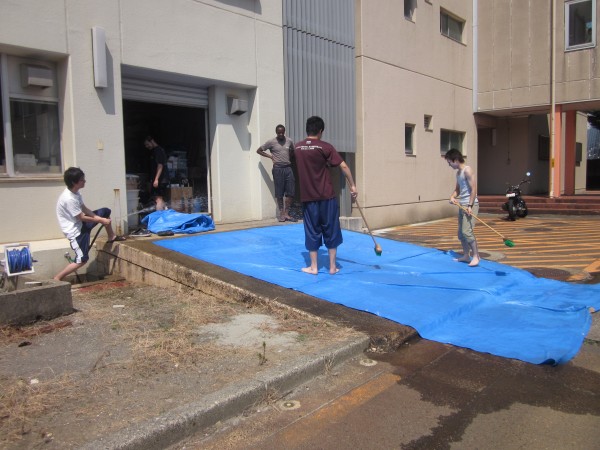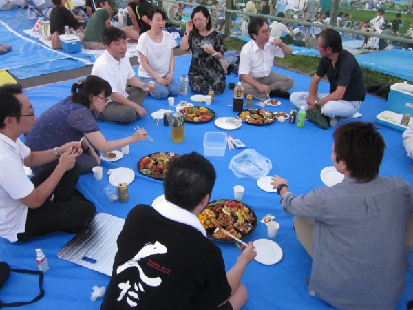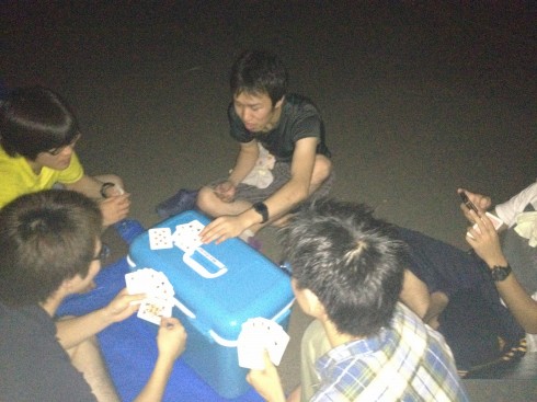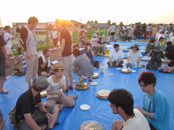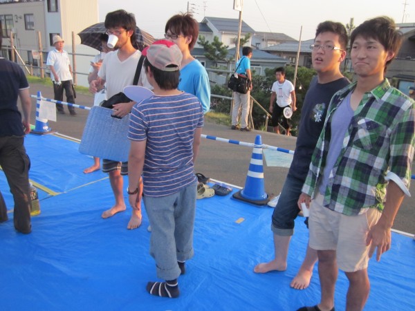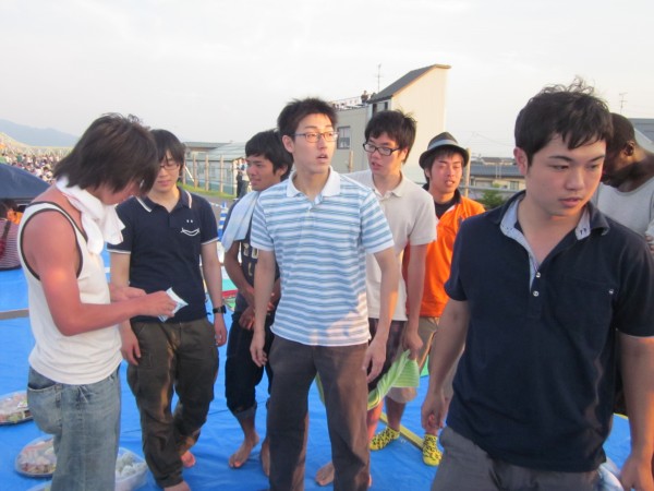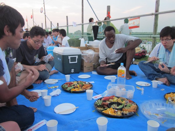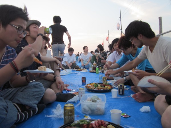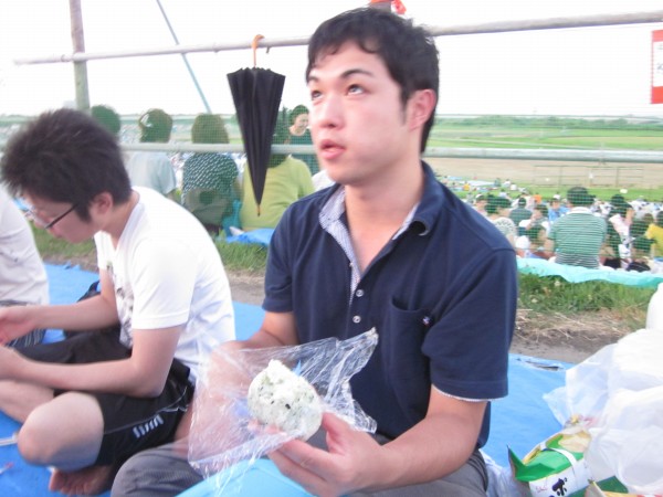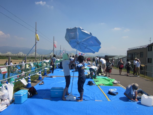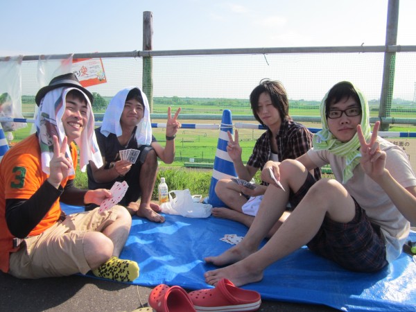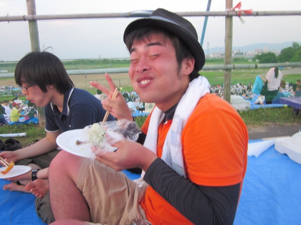 今年も夜班と昼班,おにぎり班に別れ,夜の10時から7時までが夜班.その後昼班と交代しそのまま花火が始まるまで場所取りを行いました.今年は日中35度を超える猛暑日でみんな日焼けで真っ赤になりながら場所取りを行いました.