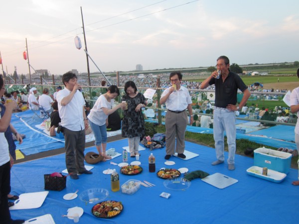 今年の長岡大花火大会は地盤研究室だけでなく,杉本先生のお客さんやオープンハウスで来ていた2人を加えた計31名参加の大所帯でした.みんなの頑張りの成果で予定通りの時間に開始でき,日本一の大花火の下でお酒やオードブルを満喫できたのではないかと思います.