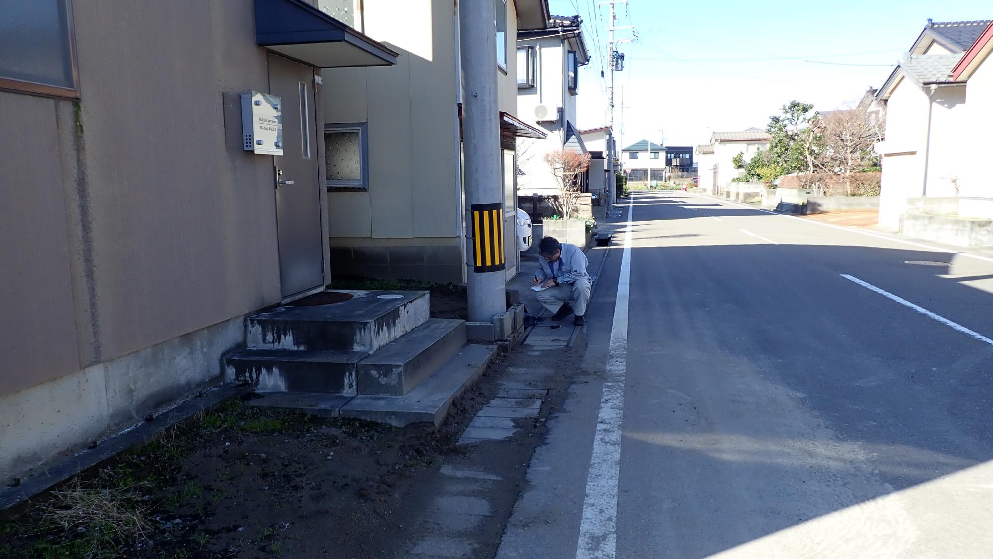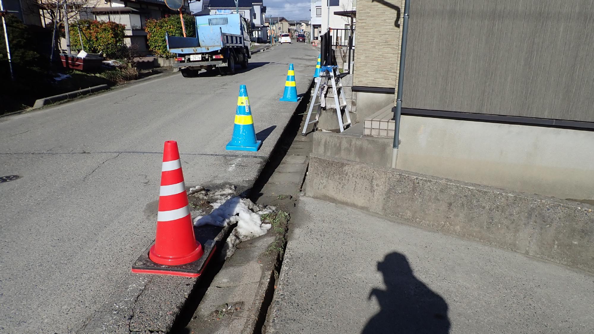 - 中央区川岸町では,被害は限定的ですが,住宅地において噴砂や建物の傾斜が発生していました.1964年の新潟地震では甚大な液状化被害が発生したエリアになるため,60年経過して再度液状化が発生したことになります.