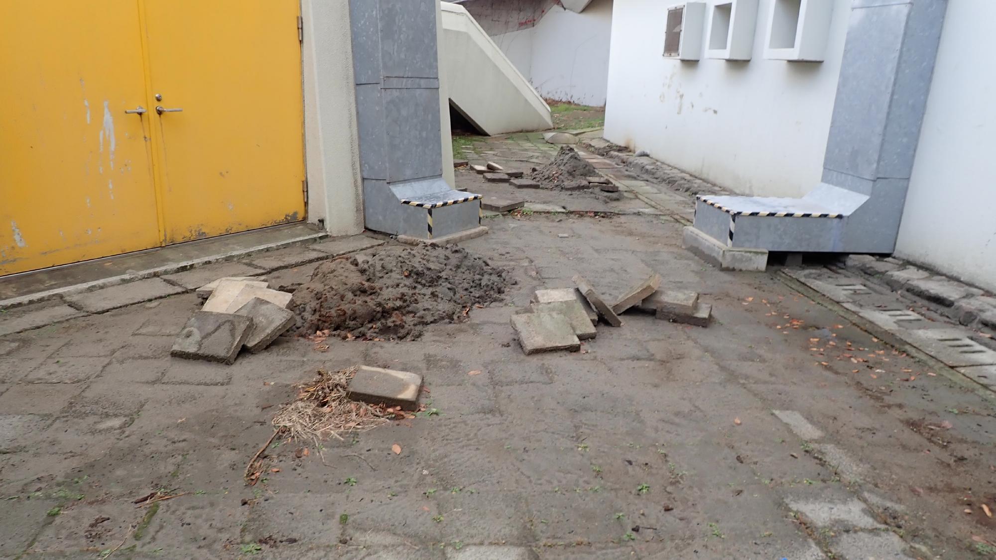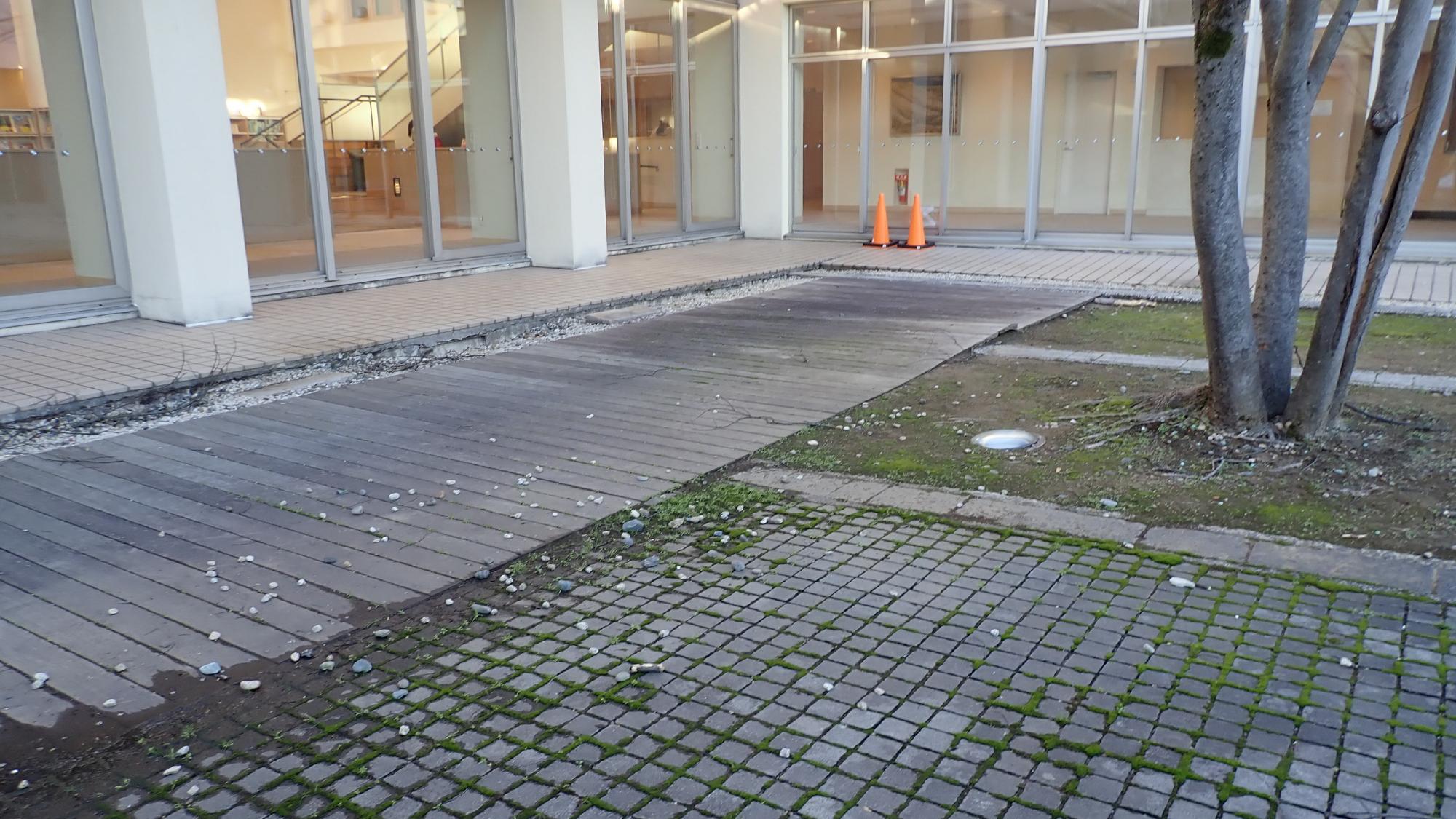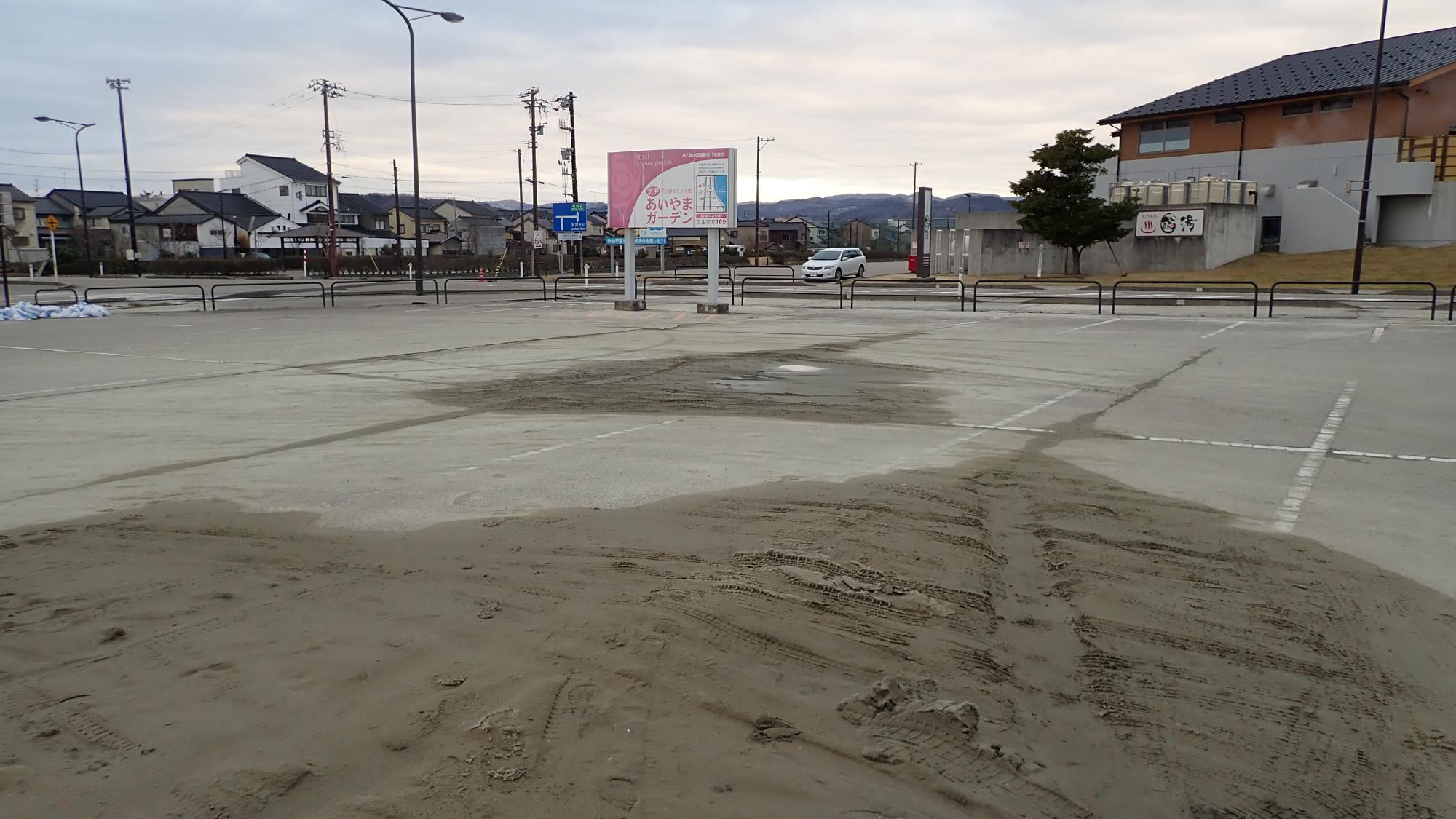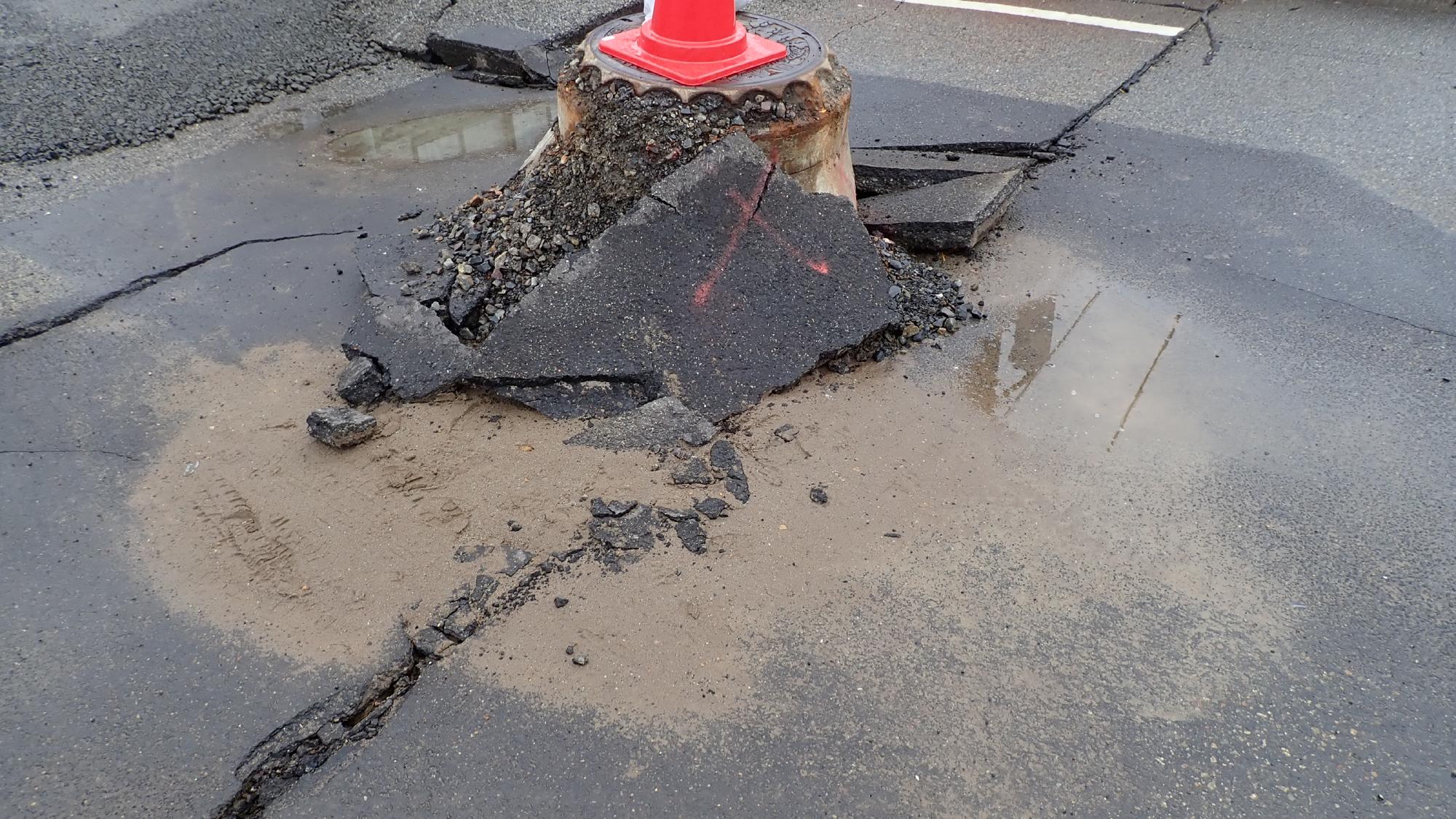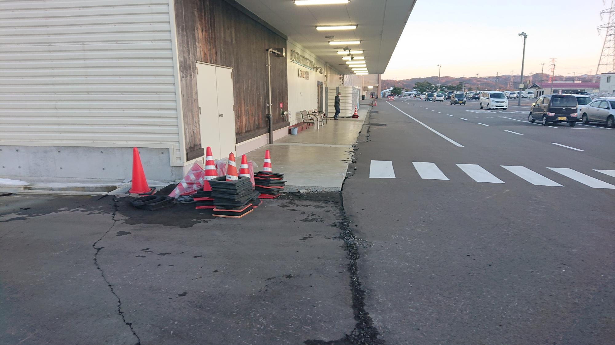 - 駅前中央地区では,被害が限定的でしたが,住宅敷地内で噴砂が発生している箇所,建物の周辺地盤が沈下している箇所が散見されました.建物の被害は確認できませんでした.