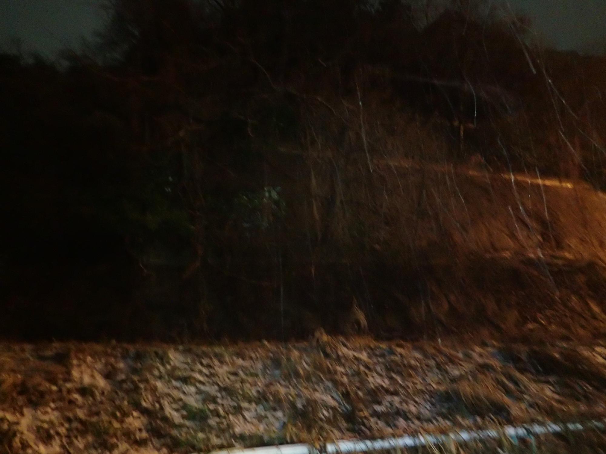 - 日が完全に暮れた状態で,青海地区北陸道トンネル出口付近を調査しましたが,ライトで照らした感じでは,噴砂や変状等の被害は見られませんでした.この地は,北陸道建設時に耐震性を考慮して,盛土構造物とせずに,橋梁構造物にした経緯から,鉱さい跡地が液状化により変状を起こす可能性が考えられたとのことでした.