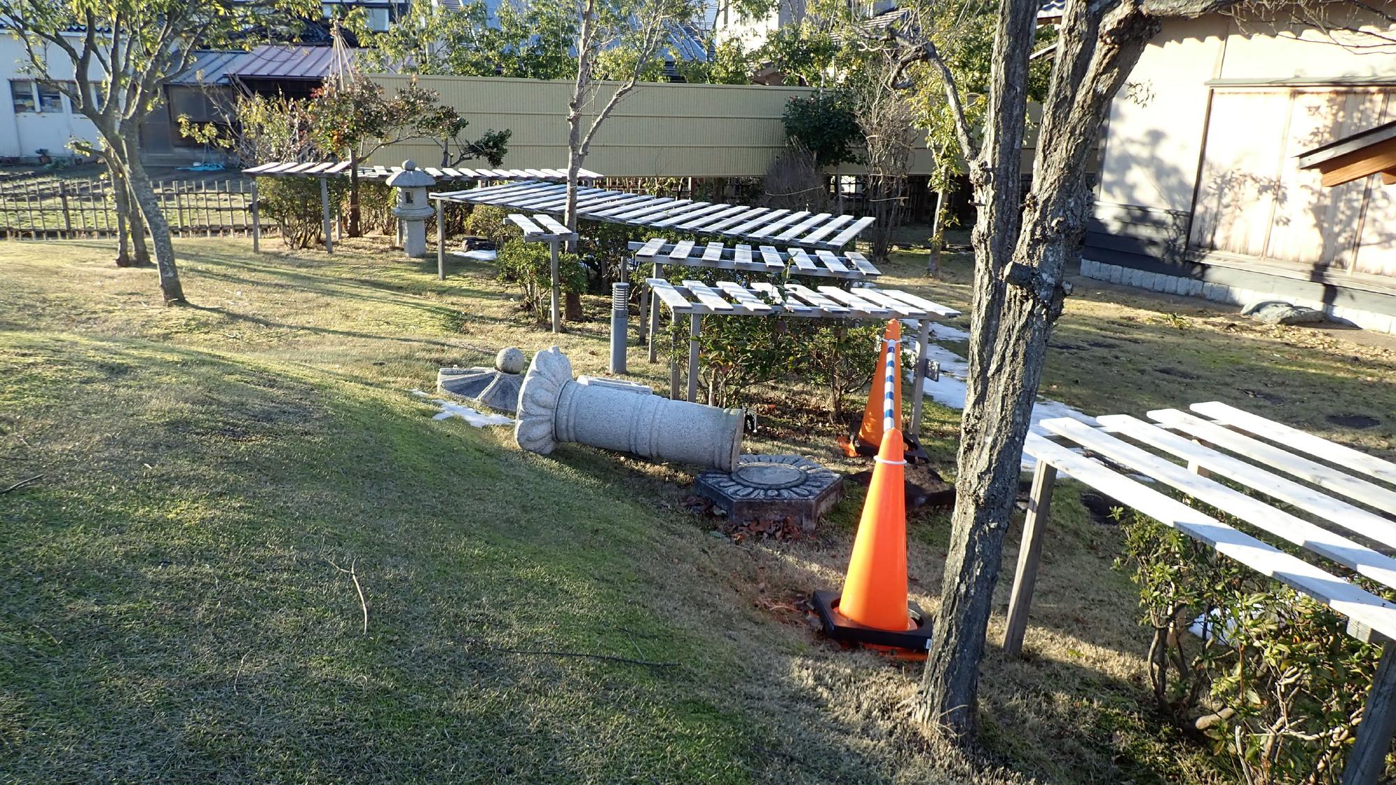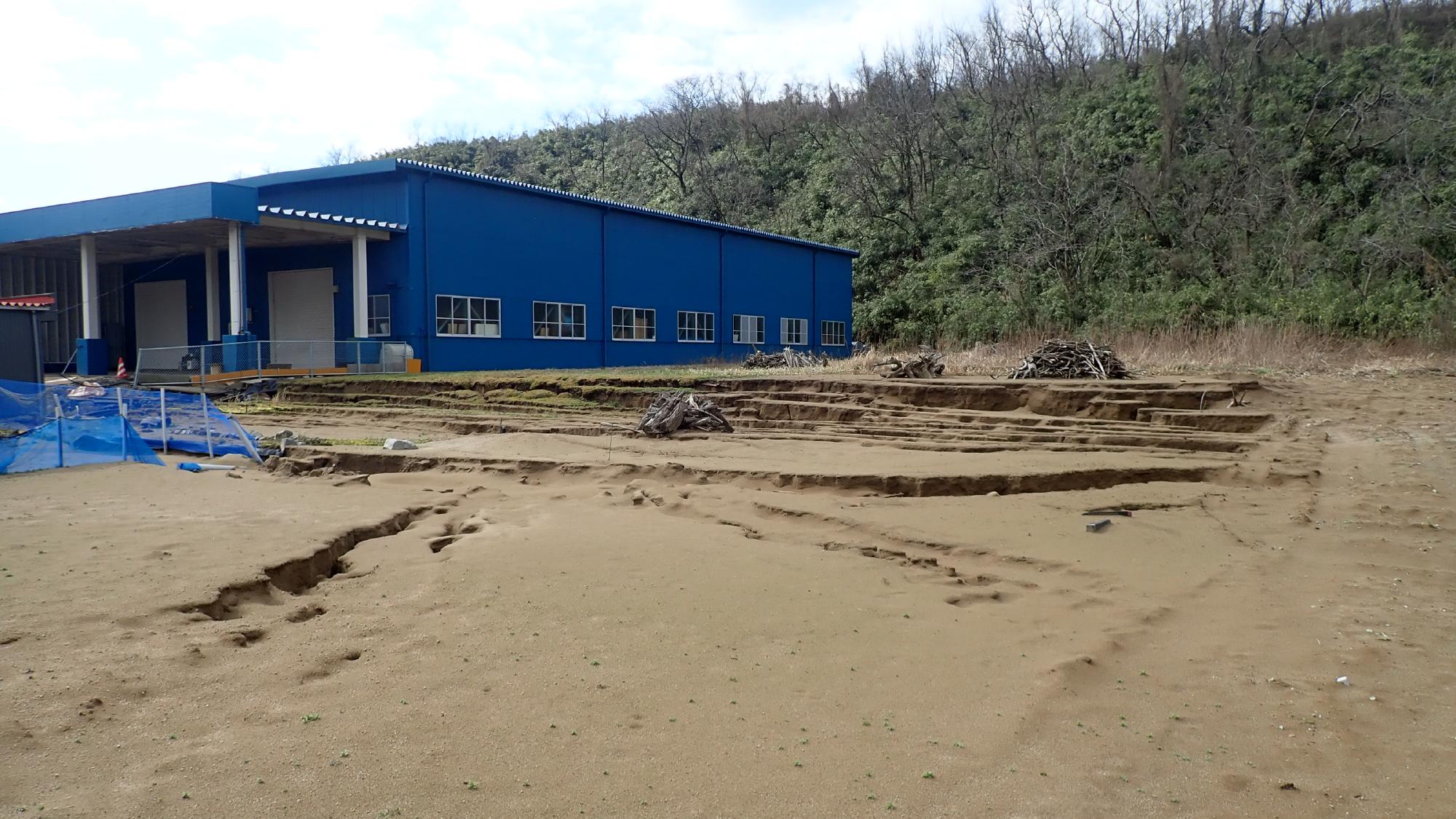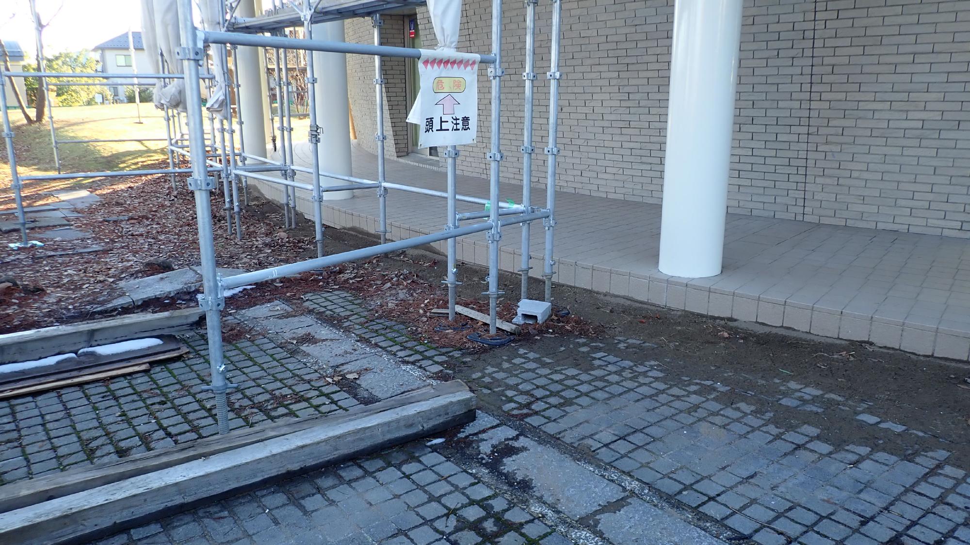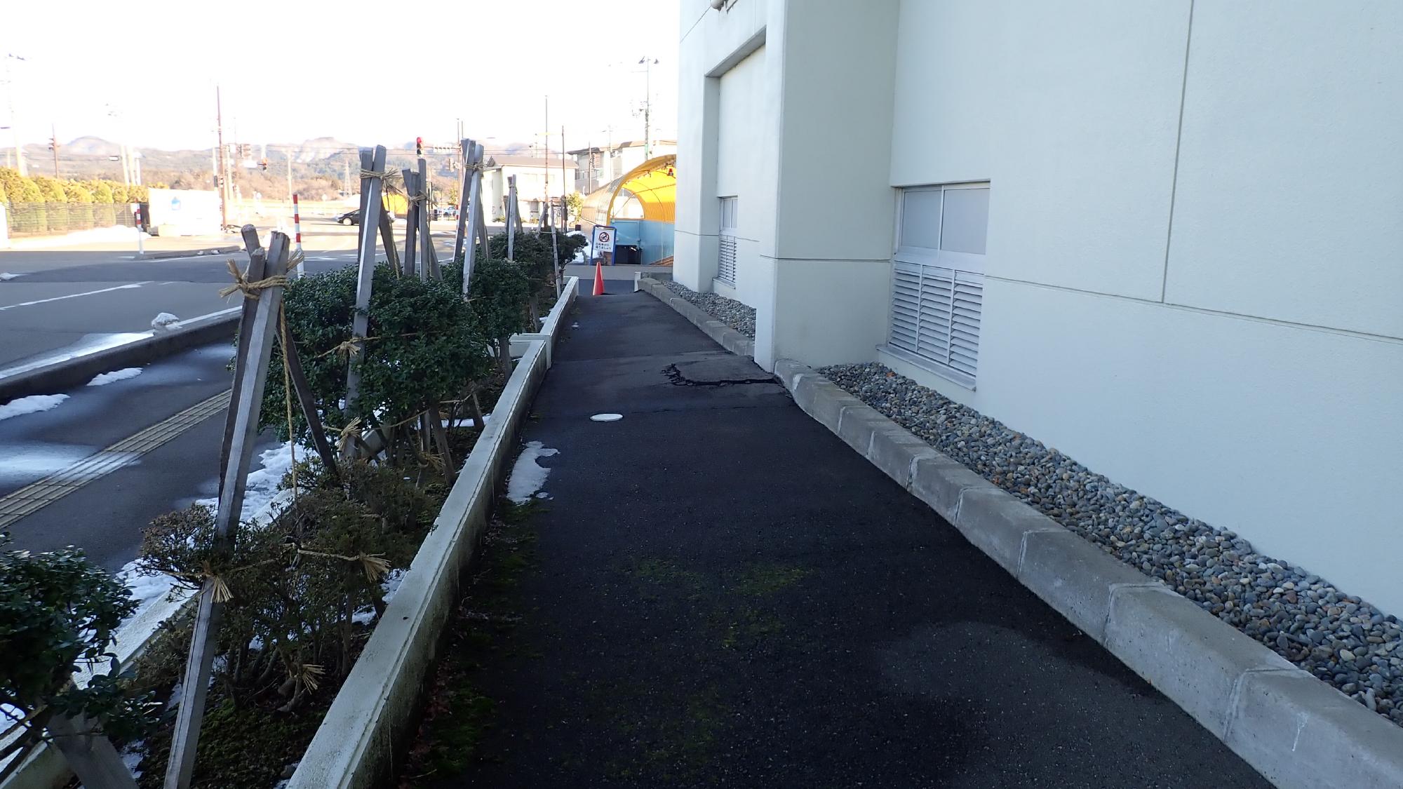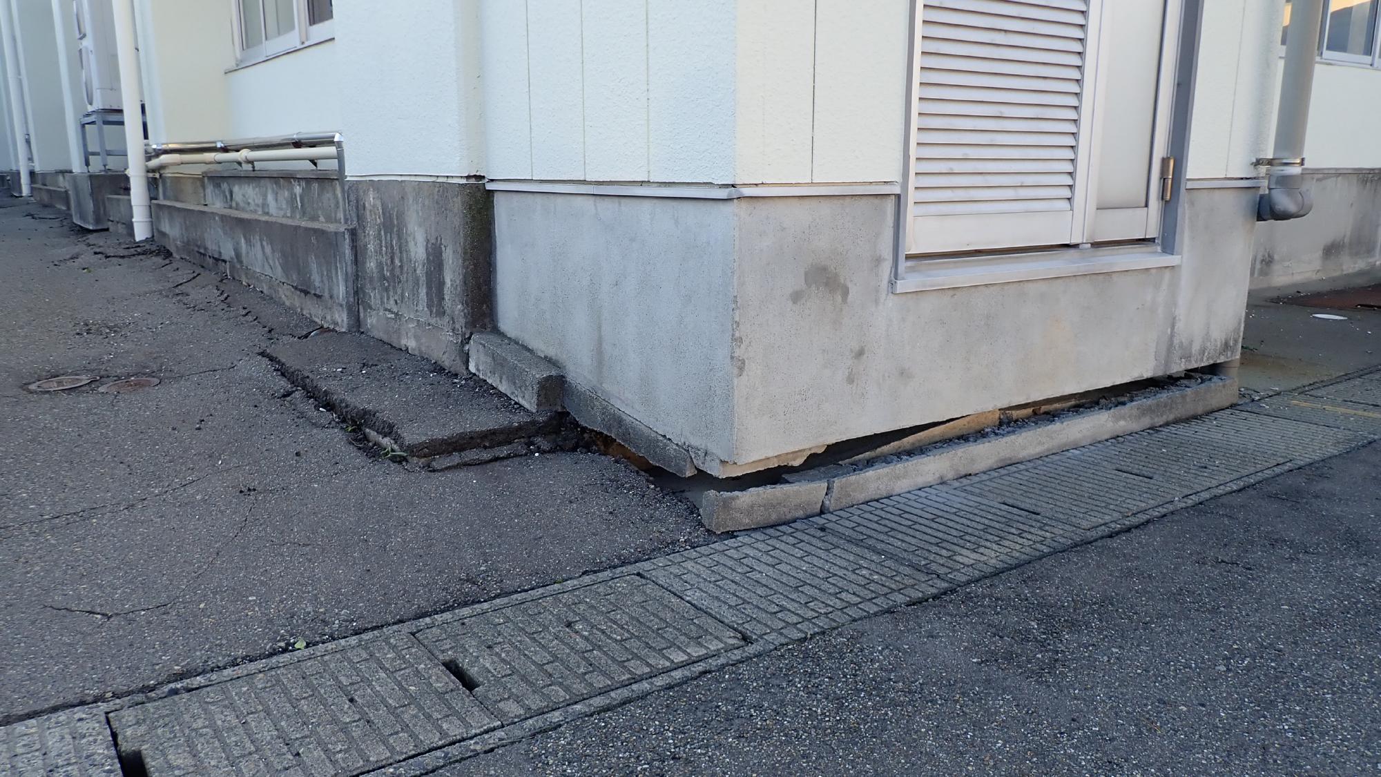 - プラント5では,同様に建物周辺地盤の沈下が発生しておりました.この建物は,中越地震,中越沖地震と何度も被害を受け,立て直しや補修工事を行ってきましたが,今回の地震でもまたもや被害が発生しました.