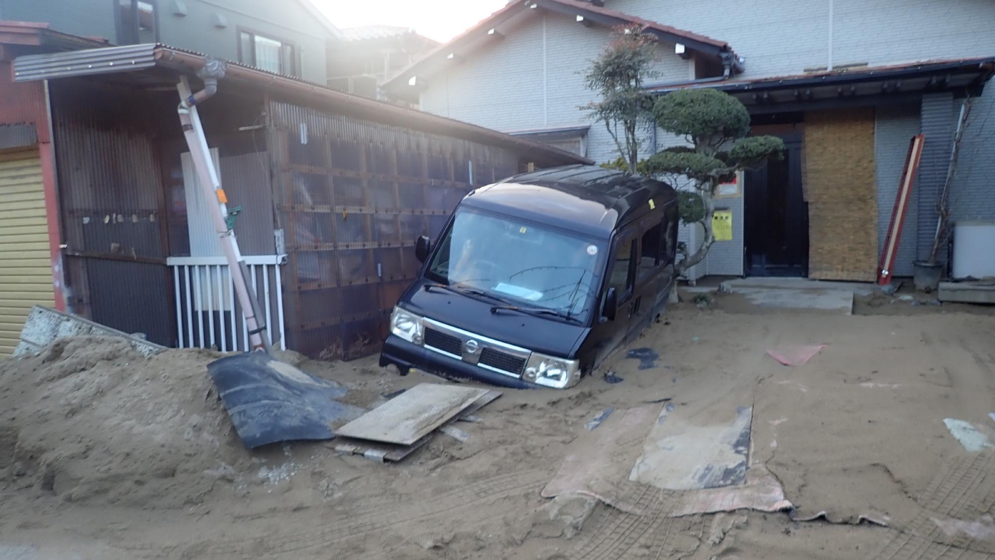 - 氷見市では,砂丘堆積物の地盤で構成された地域を中心に広域的な液状化被害が発生していました.道の駅では,駐車場や建物周辺で激しい噴砂が発生していましたが,建物が大きく傾斜している感じではありませんでした.一方で,周辺の住宅地では,住宅が大きく傾斜して,倒壊している箇所も散見されました.また,比較的古い木造家屋が完全に倒壊している箇所があり,液状化地盤でも建物が倒壊する可能性があることが分かりました.