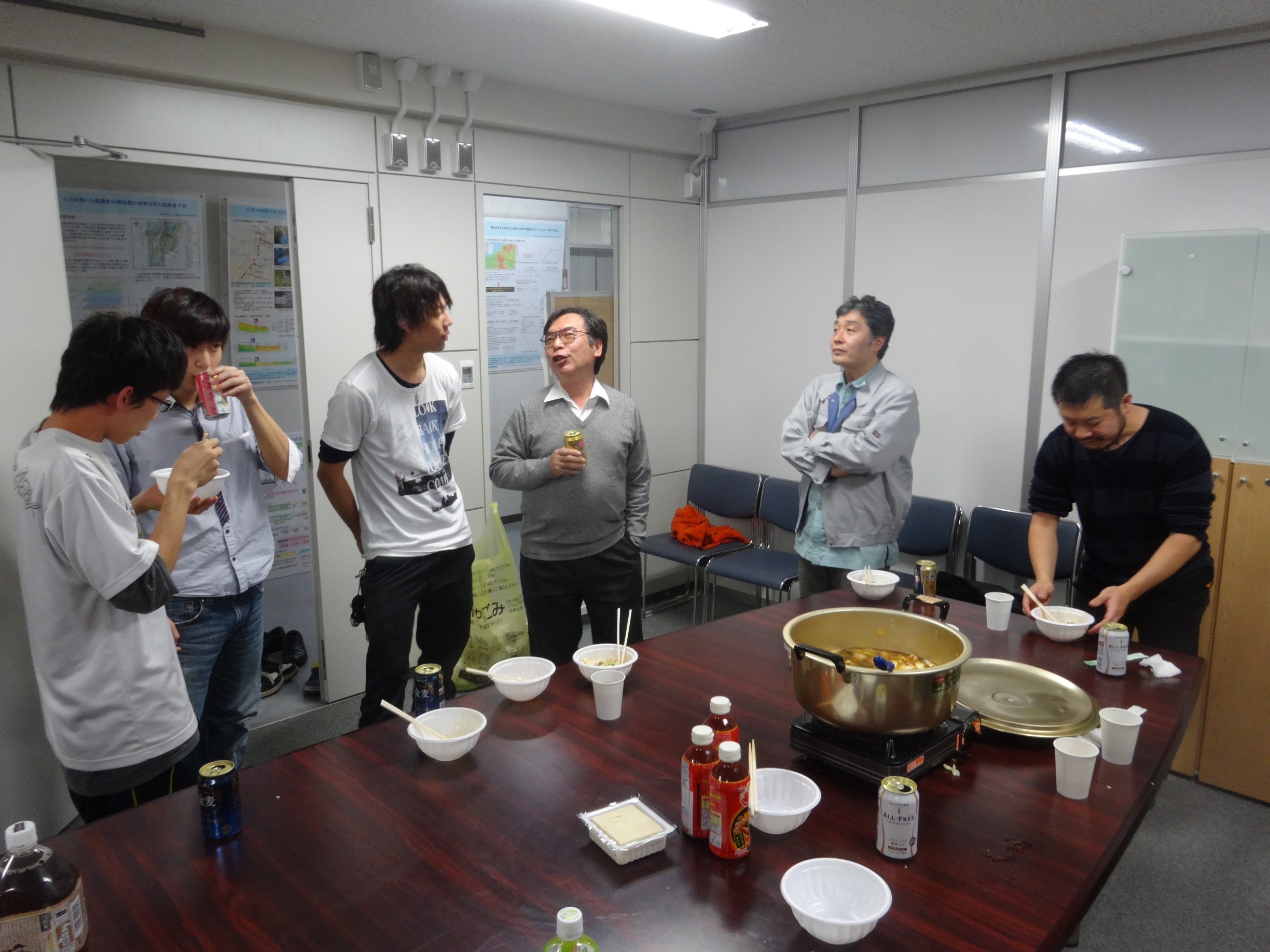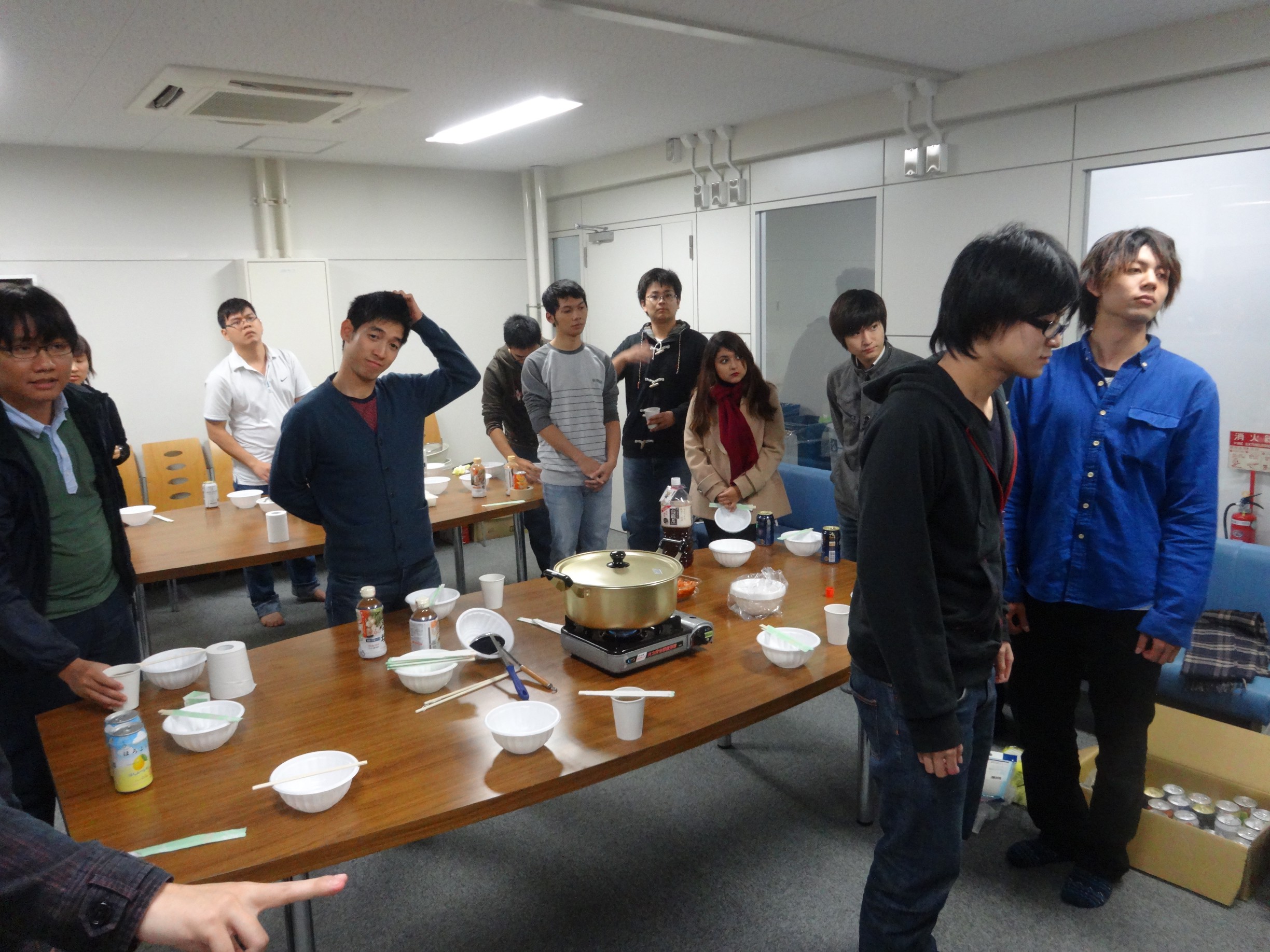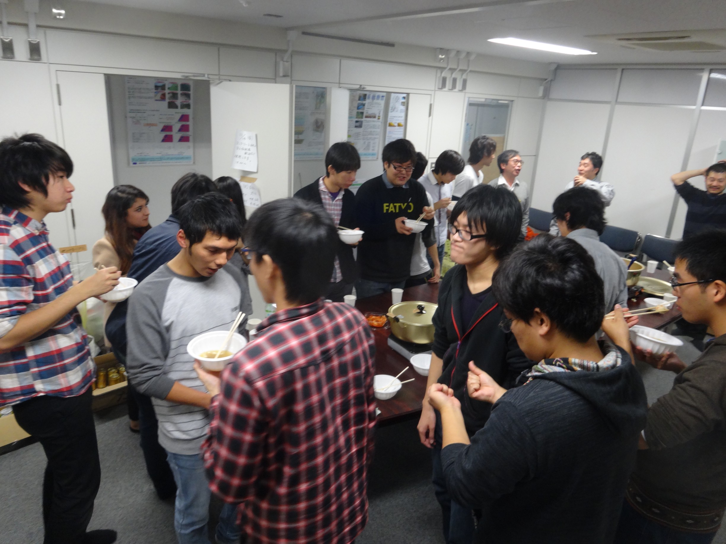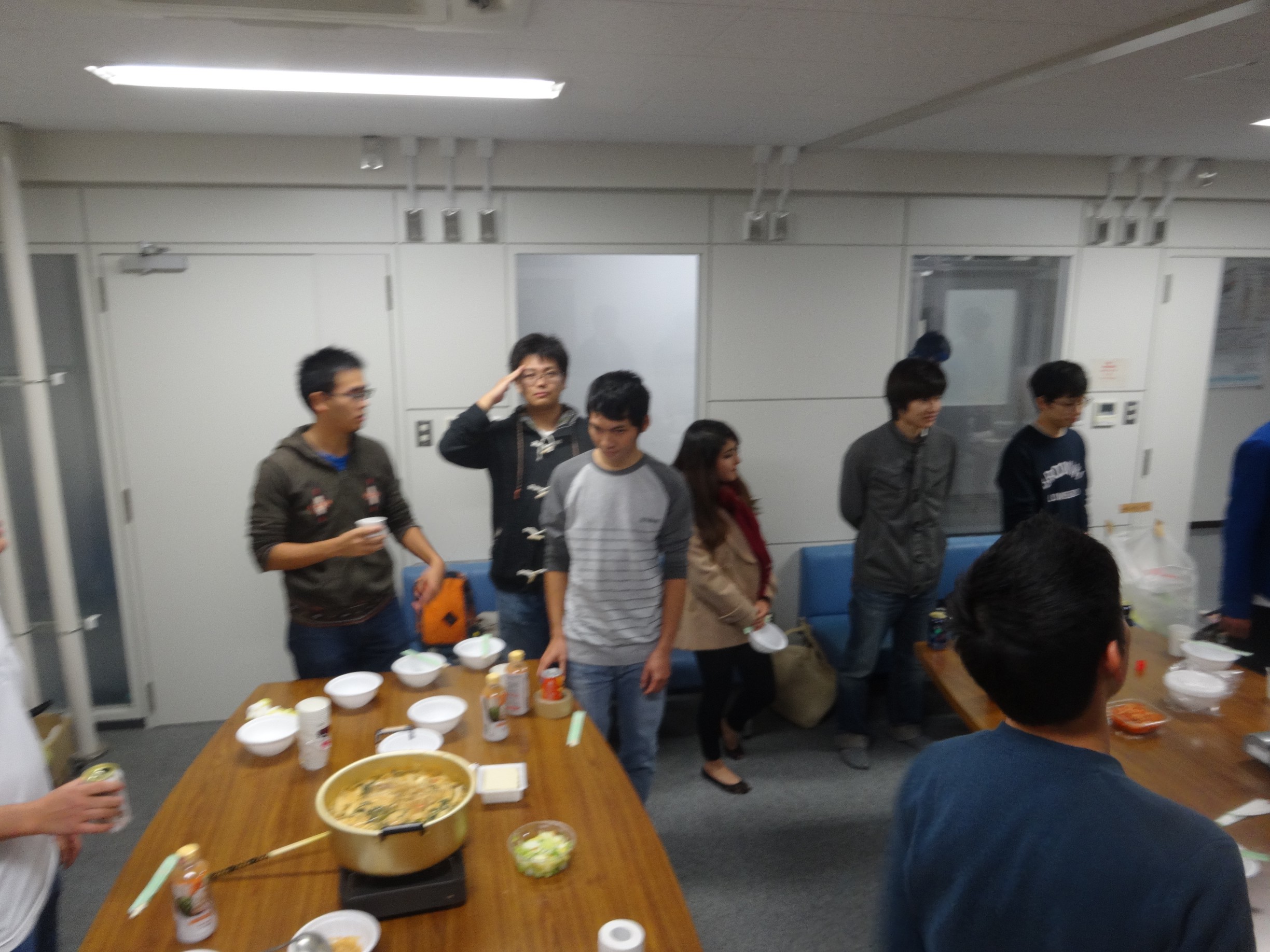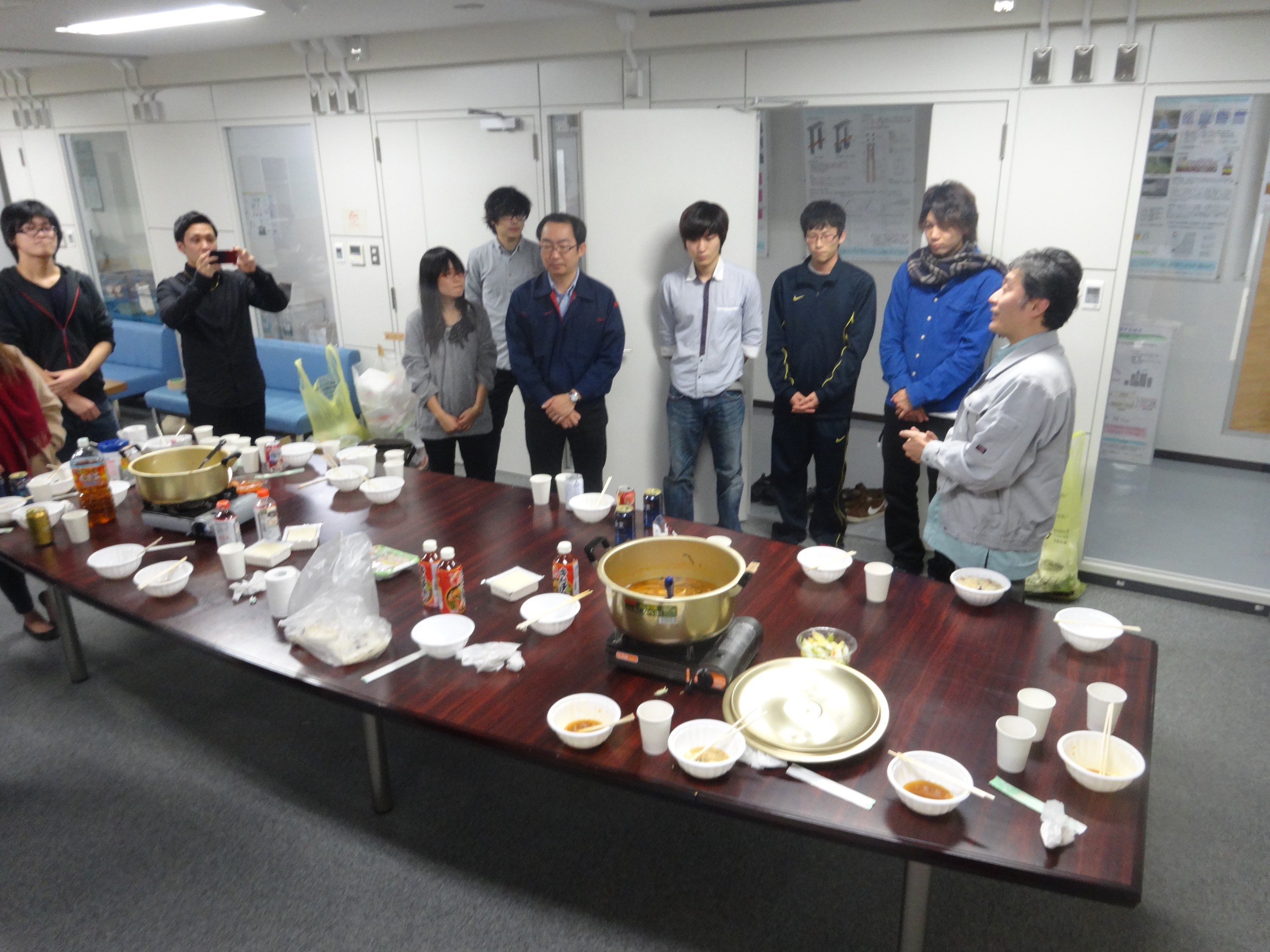 平成26年11月11日,本校の八階ラウンジにてB3仮配属歓迎会が行われました.建設系はB3の後期から研究室の仮配属が行われます.今回の仮配属で地盤研に加わったB3は9名でした.皆,B4の本配属でも「地盤研にいきたい」という意気込みを持った人ばかりでした.