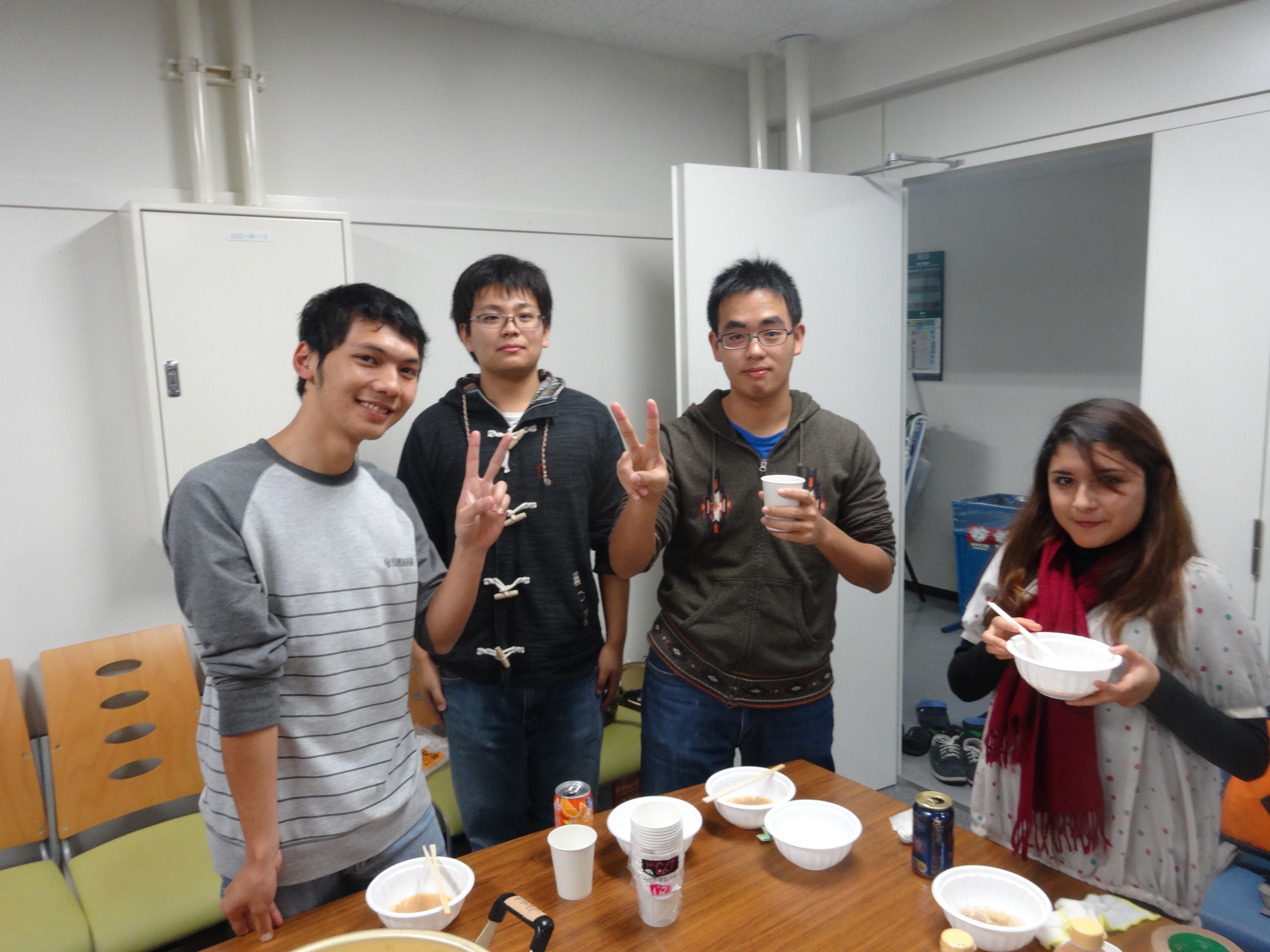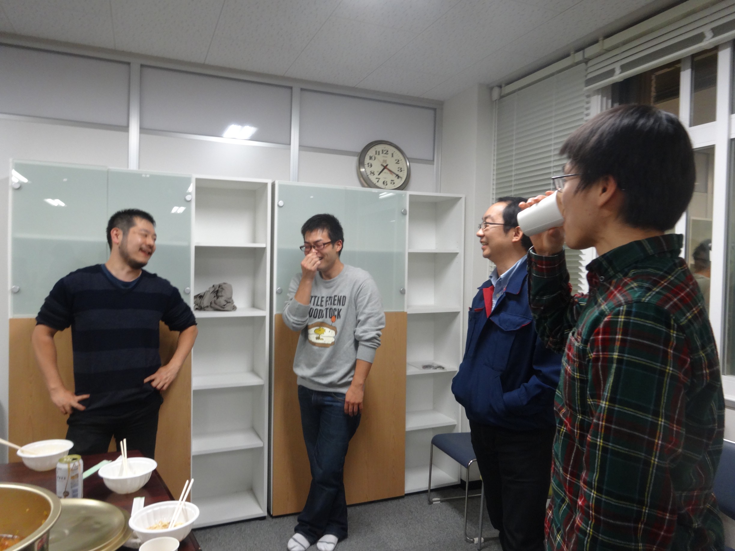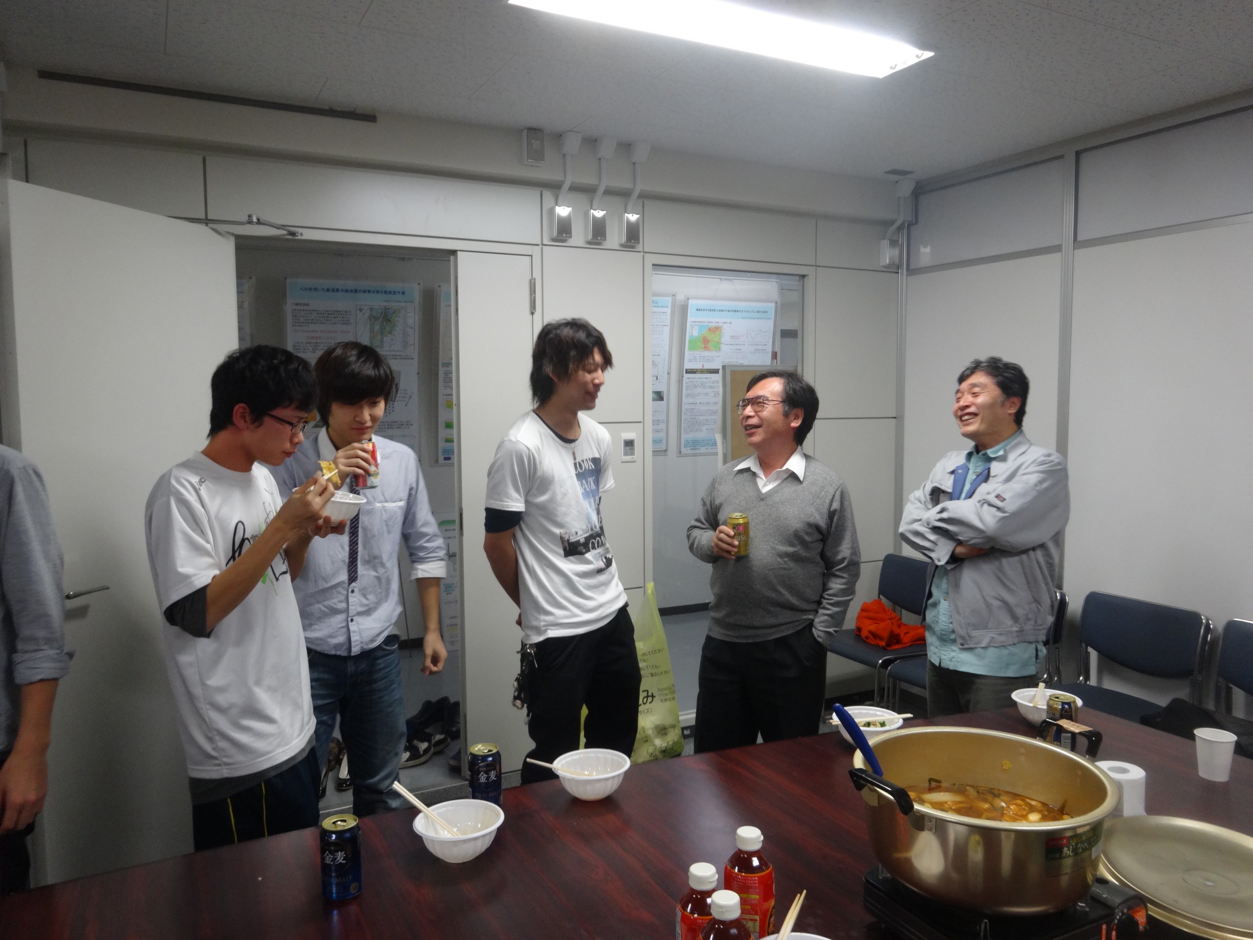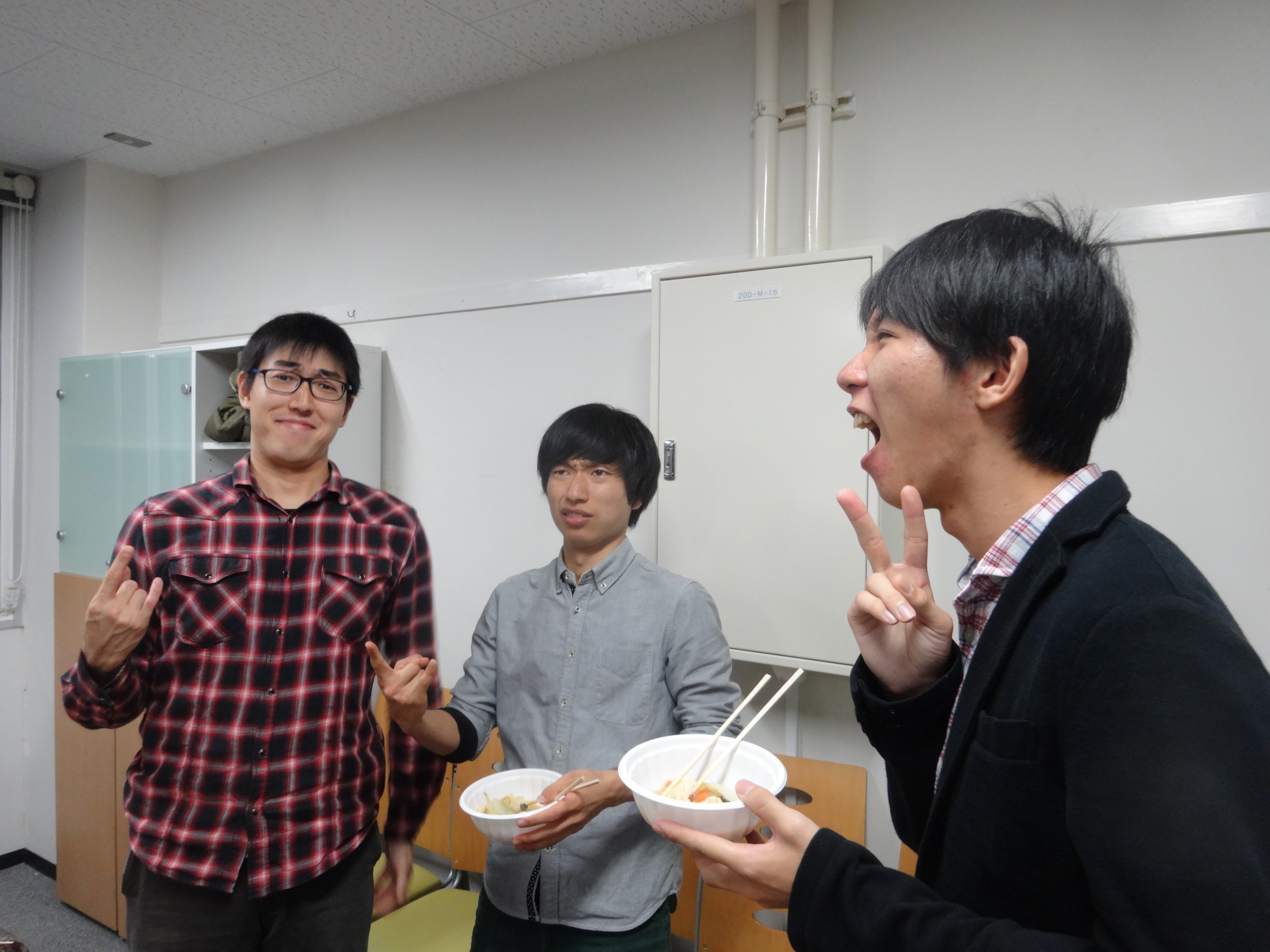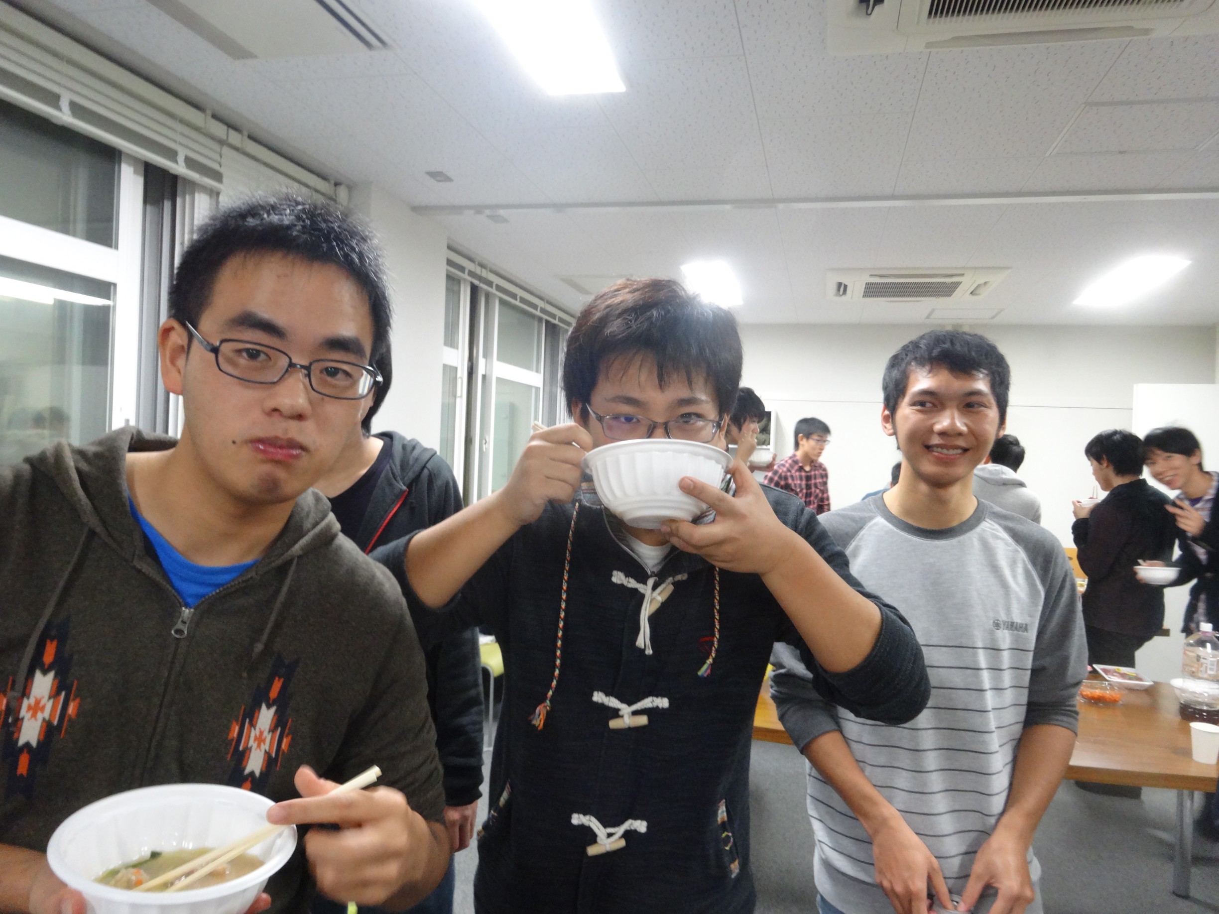 平成26年11月11日,本校の八階ラウンジにてB3仮配属歓迎会が行われました.建設系はB3の後期から研究室の仮配属が行われます.今回の仮配属で地盤研に加わったB3は9名でした.皆,B4の本配属でも「地盤研にいきたい」という意気込みを持った人ばかりでした.