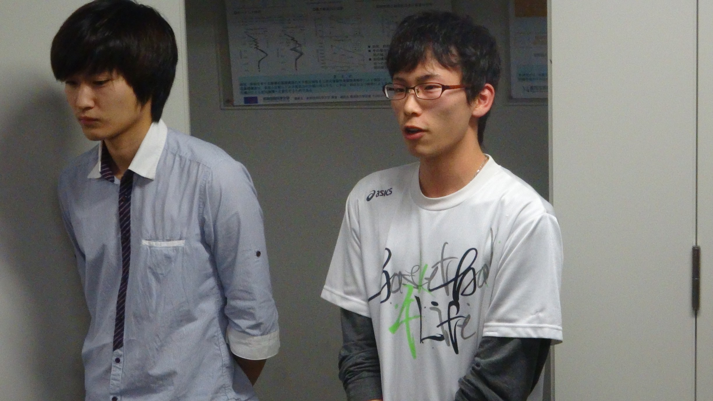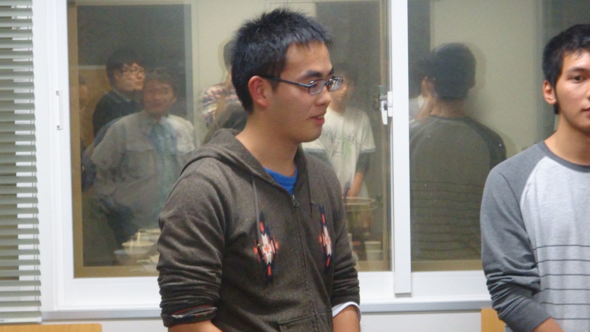 歓迎会の半ばに,B3のみなさんに自己紹介をしてもらいました.初めての顔合わせの場ということもあり,緊張があったせいか,思うようにしゃべれなかったというのもありますが,今年のB3のメンバーは去年に引き続き,おとなしいイメージです(今のM1がうるさいだけかも・・・).仮配属を経て,これからB3の皆さんがどのように成長していくか楽しみです.