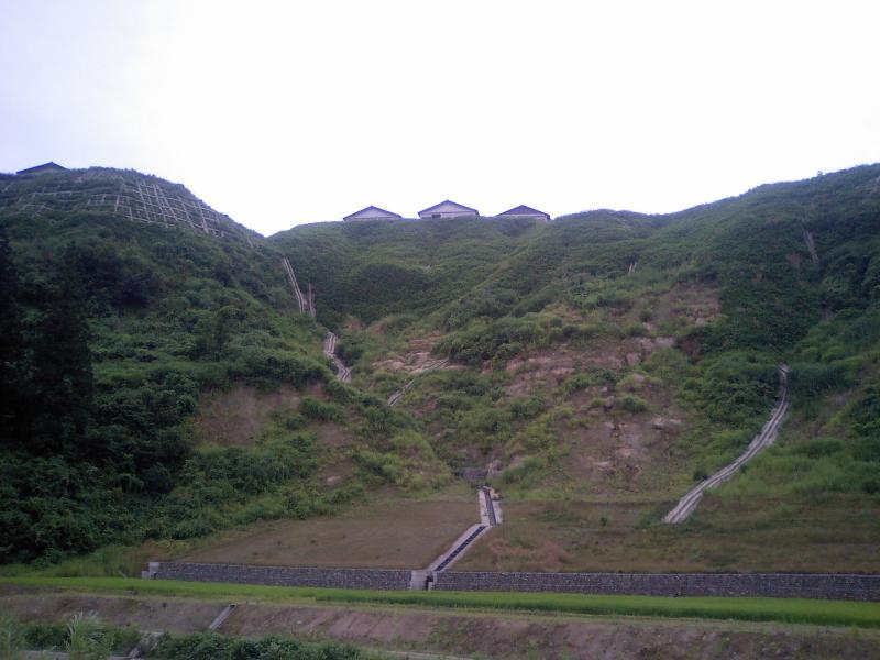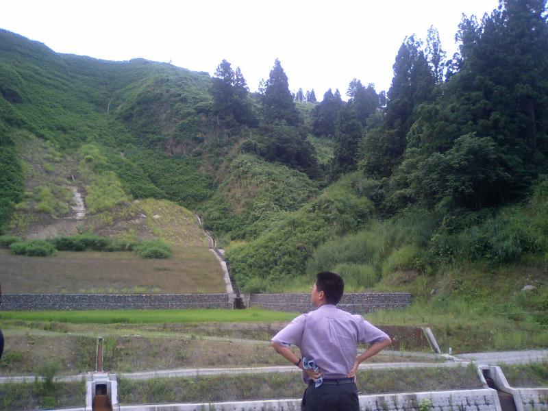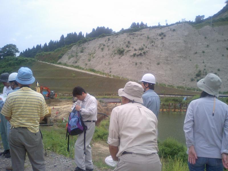 - 中越地震で数々の斜面崩壊と河道閉塞による二次的災害を被った現場を見て回りました.東竹沢で発生した大規模斜面崩壊による河道閉塞現場では,仮排水路の撤去と排水路本工事が着々と進んでいました.寺野地区は久しぶり見学に訪れたせいか地震当時の面影がほとんど無くなる位,復旧工事が進んでおりました.楢木の大規模斜面崩壊現場では,すっかりきれいな状態に姿を変えておりました.きれいな山の景観が広がる中,牛舎からモーモー鳴き声が響いておりました.
