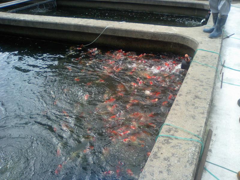 - 本見学会の最後に,長岡国道さんと函館高専の学生を連れてDr.高田の新潟の実家(山古志虫亀)に立ち寄り,山古志と言えばコレと言わんばかりの泳ぐ宝石,養殖の錦鯉を見せて頂きました.