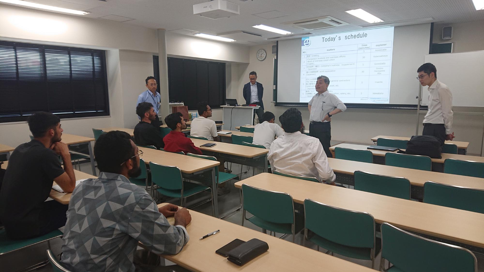2024年6月26日に本研究室OBが複数名所属する飛島建設株式会社様による建設業界説明会を開催しました.一時は実務訓練で大変にお世話になりましたし,地震研の池田教授,コンクリート研の山口技術専門職員が所属されていた企業です.当日は,海外展開にも積極的であるということから,前半は留学生向け,後半は日本人向けの2ランド制で説明を行って頂きました.面倒なことを引き受けてくれて感謝申し上げます.前半部では,当該企業に所属されている外国人の技術者とオンラインで結び,歴史や成果についてご説明頂きました.当然,英語ですけど.パキスタンにも拠点があるそうで,出身学生は興味を持って説明に耳を傾けていました.後半部分では,オンラインでOBと対話する時間があって,一昔前では考えられないような,非常に厚みのある内容であったと感心しました.就職活動を控える参加学生にとって少しでも参考になれば有難いと思います.